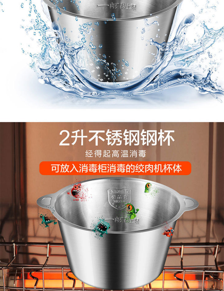 家用绞肉机 电动两升不锈钢小型绞馅打肉碎肉机