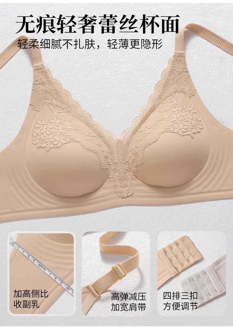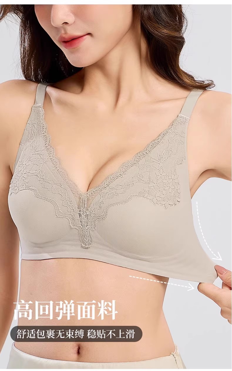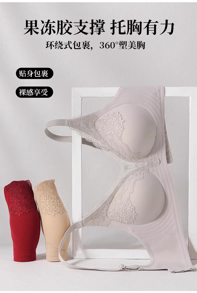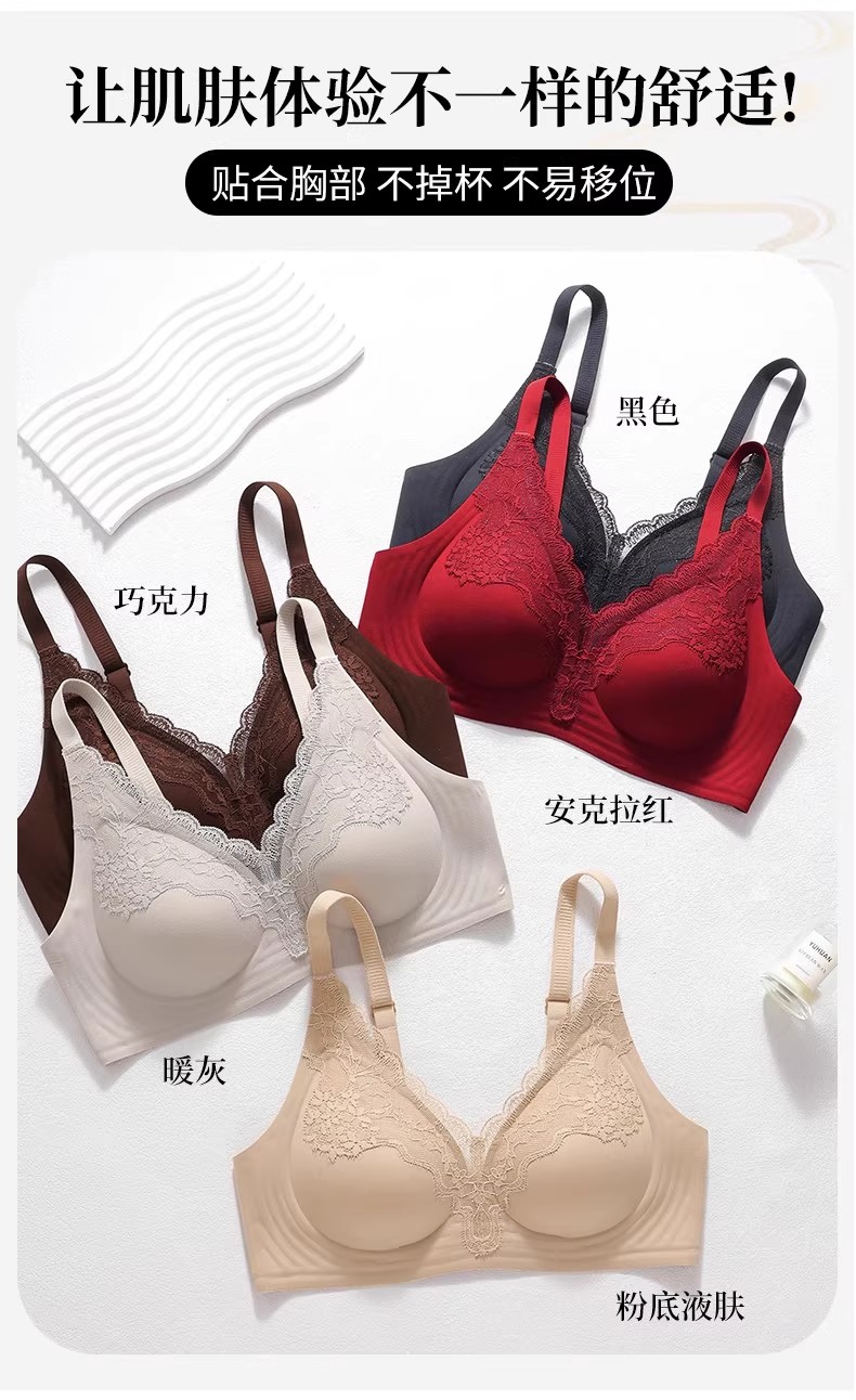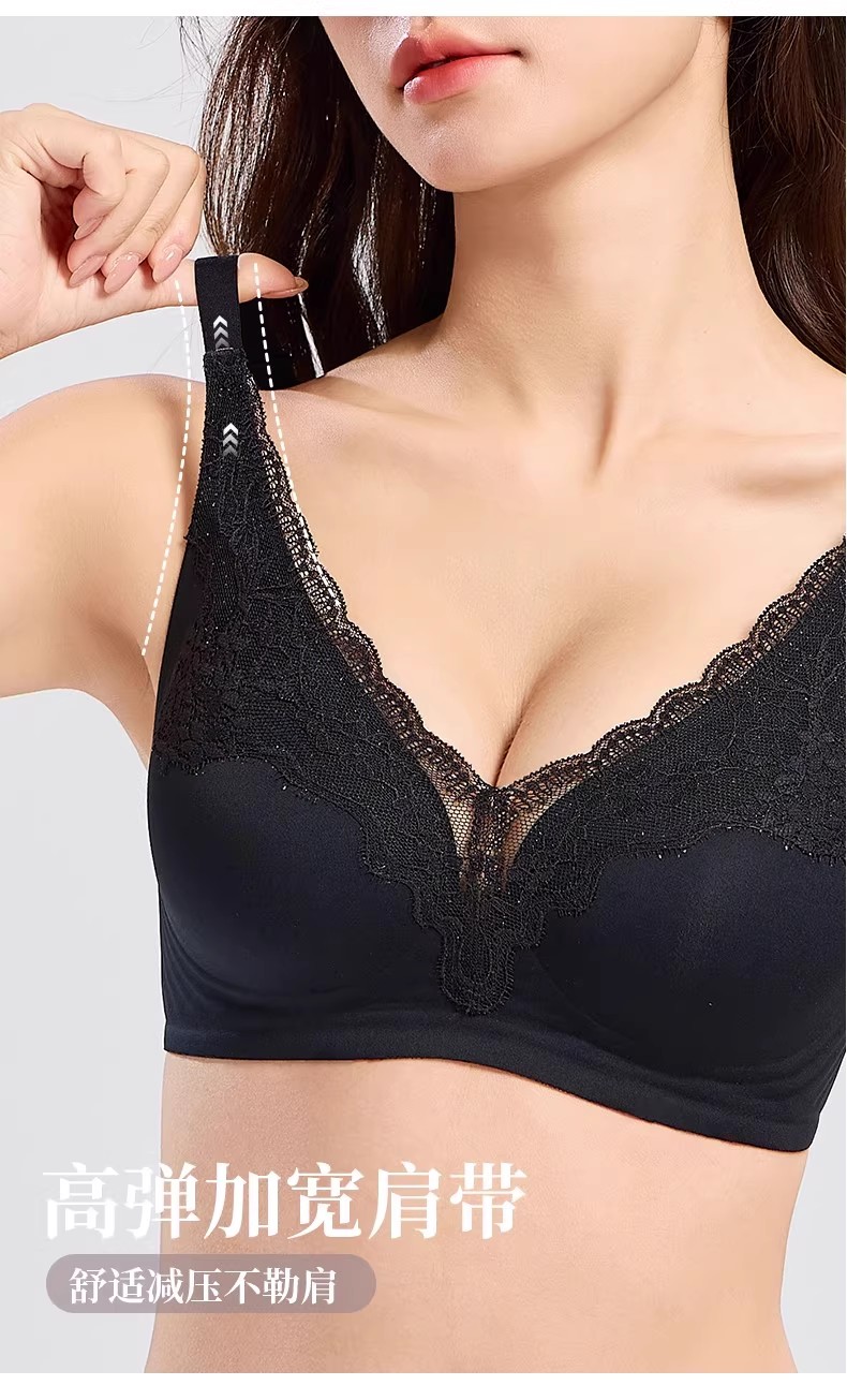 自选两件!【特妮娜 蕾丝无痕果冻内衣】一片式无痕 无钢圈 无缝线 无胶骨 果冻胶软支撑 托胸有力 浪漫蕾丝杯面 高弹加宽肩带 高弹面料 U型美背