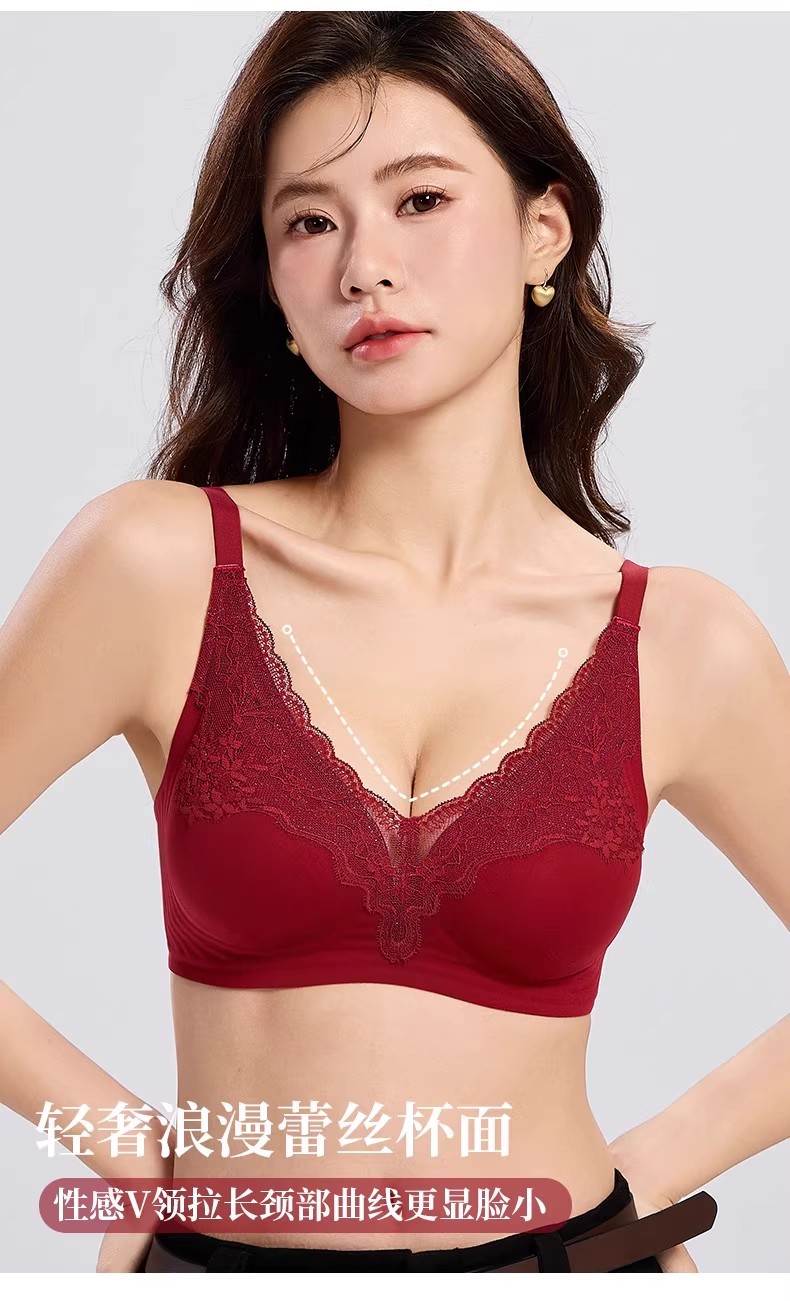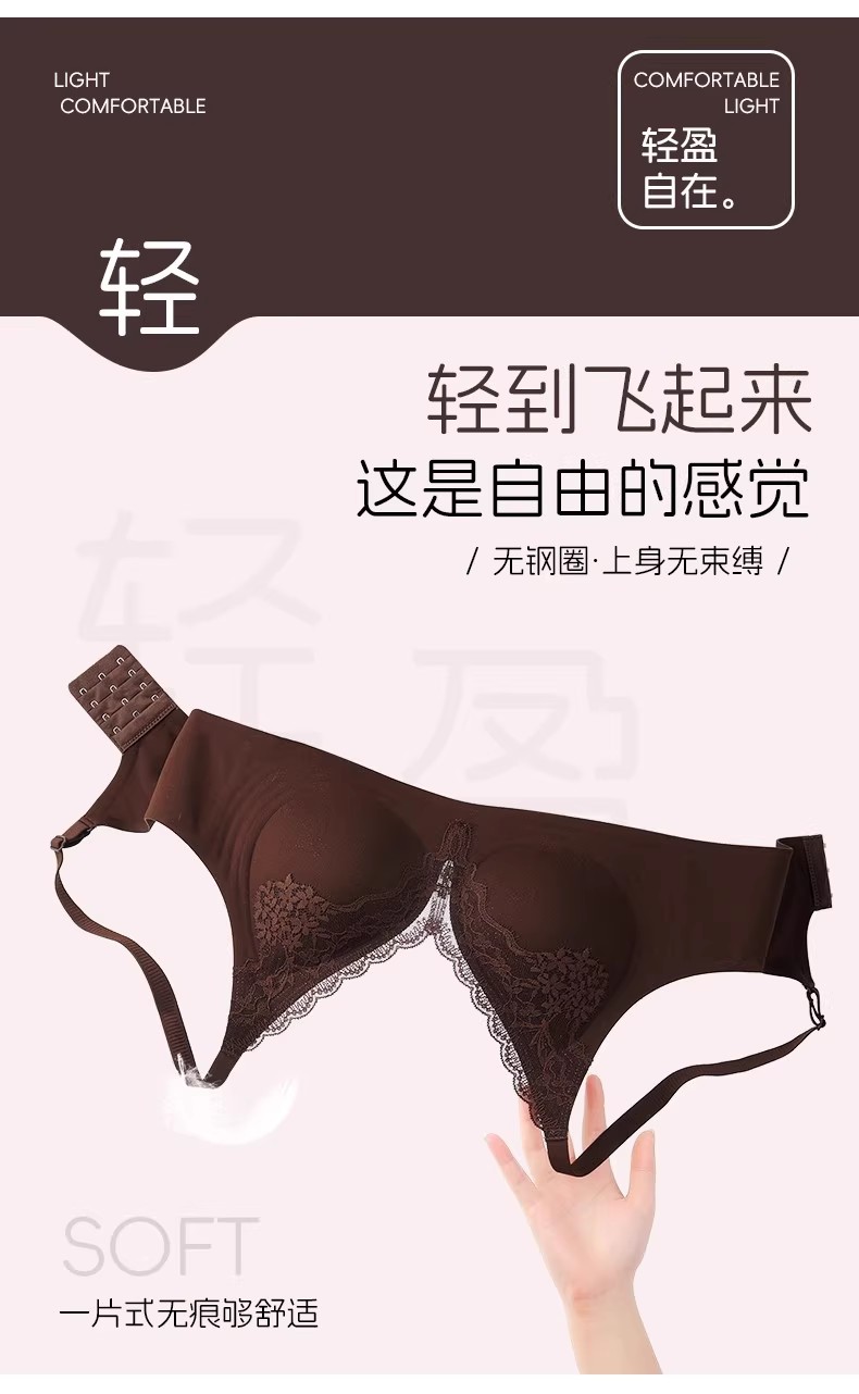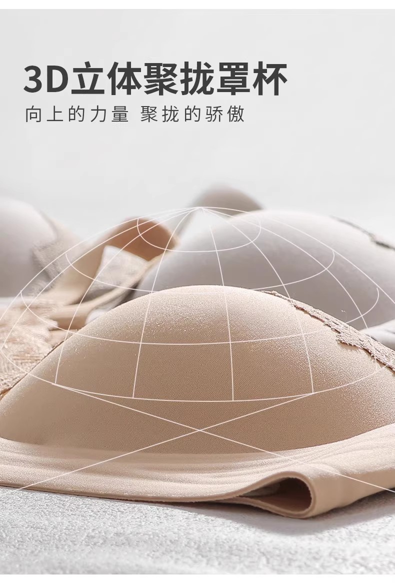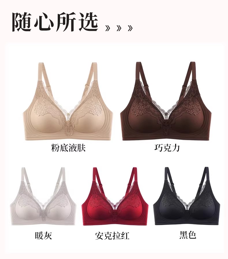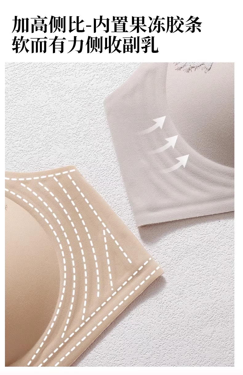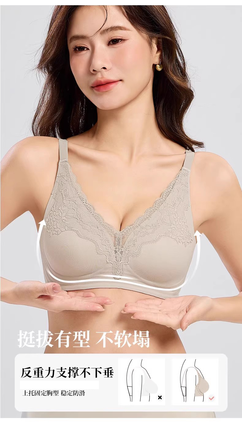 自选两件!【特妮娜 蕾丝无痕果冻内衣】一片式无痕 无钢圈 无缝线 无胶骨 果冻胶软支撑 托胸有力 浪漫蕾丝杯面 高弹加宽肩带 高弹面料 U型美背