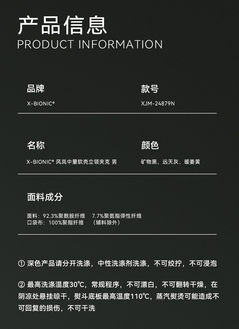 X-BIONIC 风岚中量软壳立领夹克男 秋冬肤感防风耐磨软壳衣24879N