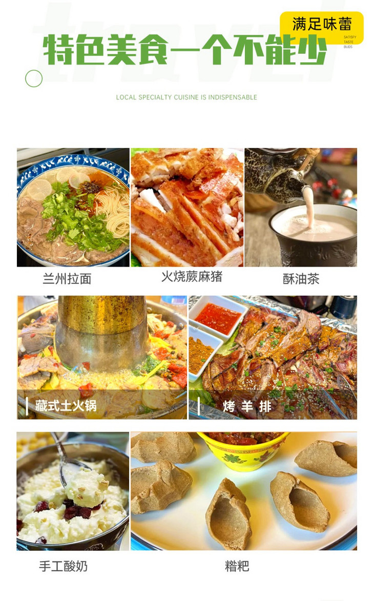 3、行程结束当天17:00左右抵达兰州西站,大家可以依据自己的时间,自行选择继续游玩或是启程回家。火车建议购买19:00以后的车次,高铁建议购买18:00以后的车次,飞机建议购买20:30以后的航班。兰州火车站距离兰州中川机场约68公里,车程约1.5小时。兰州站距离机场大巴客运中心站徒步300米,到达机场71公里,用时1小时25分钟左右,大家根据自己的航班车次选择返程票。