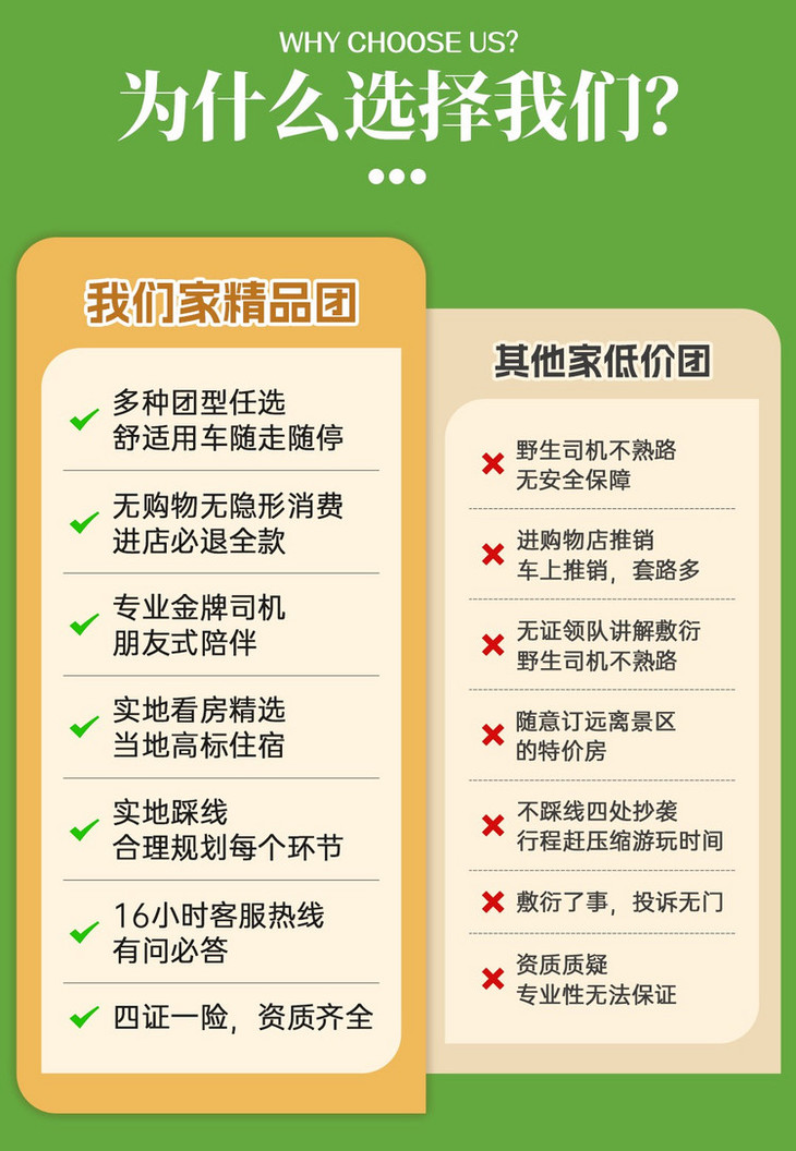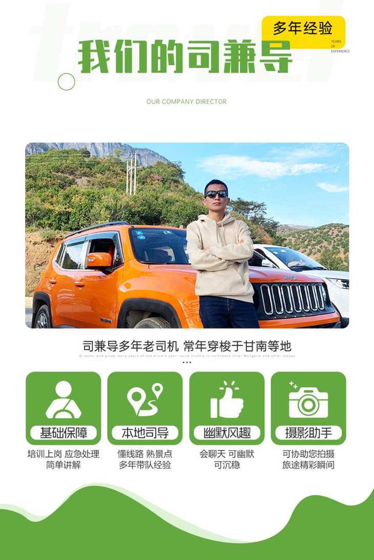 5、领队:司机兼领队(司机仅提供向导、代办住宿等服务;无法像专业领队一样提供讲解、景区伴游等服务!)