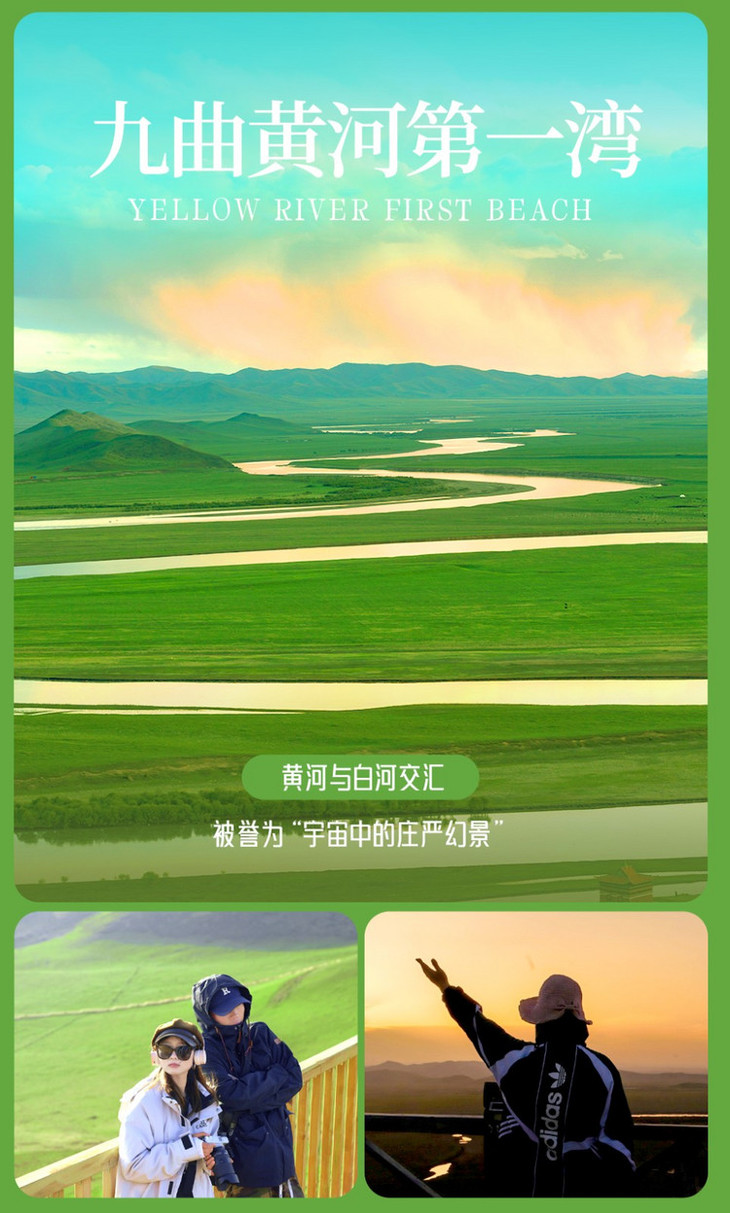 享用完午餐后,我们将乘车前往【九曲黄河第一湾】(车程约3.5小时),黄河在四川若尔盖县唐克乡与白河汇合,形成了壮美的九曲黄河一湾,这里能观赏到奇特且壮丽的自然景观,也是摄影师钟爱的取景地。观赏黄河九曲第一湾,视野最好的地方是唐克镇索克藏寺后面小山的山顶,这里也是观看日出和日落的最佳位置。我们乘坐电梯到达观景台,观景台上的景色会让人忘却一切烦恼。