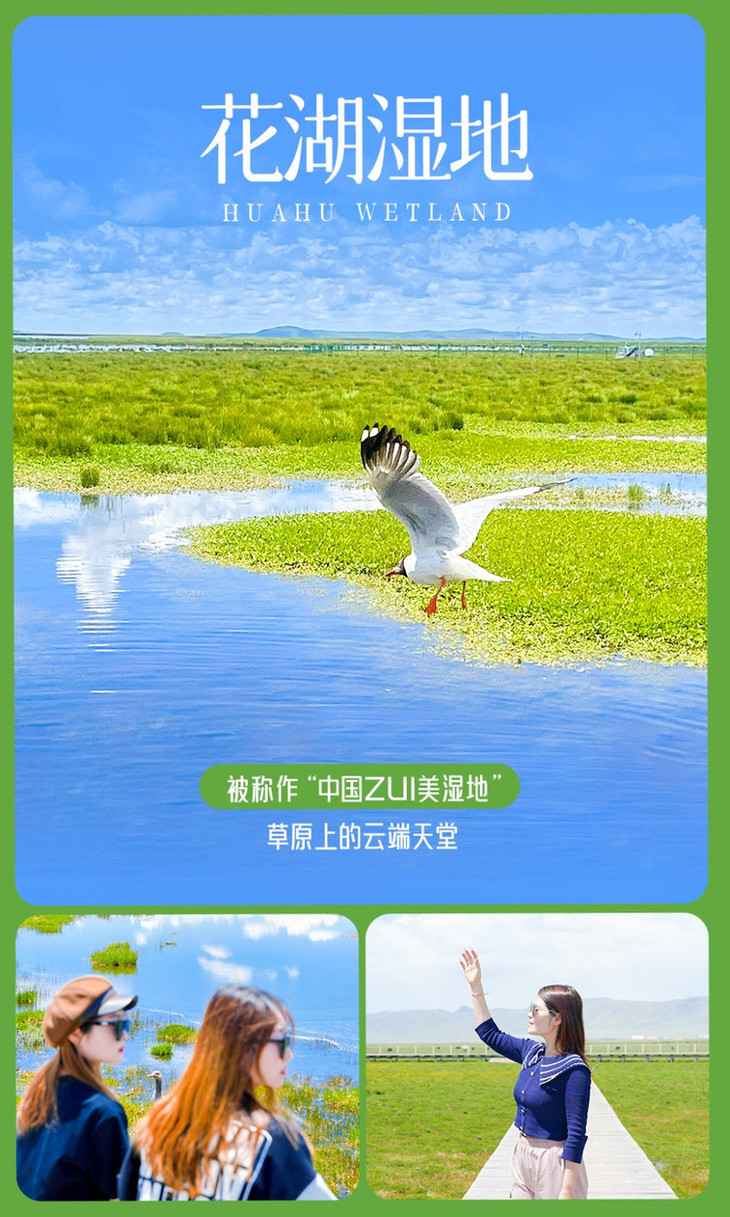 午餐后,前往【阿万仓湿地】(车程约2小时),阿万仓湿地被《中国国家地理》评为“中国最美的五大草原湿地”第一名,美国旅游杂志《视野》“让生命感受自由”的世界50个户外天堂之一,也是甘肃100个网红打卡地之一。阿万仓就坐落在黄河第一湾的臂弯里,河流与黄河汇流之地,水泻不畅形成的汉河和沼泽,滋润着这片广袤的草原,高山、湿地、草原,汇成了一幅壮丽的自然画卷。
