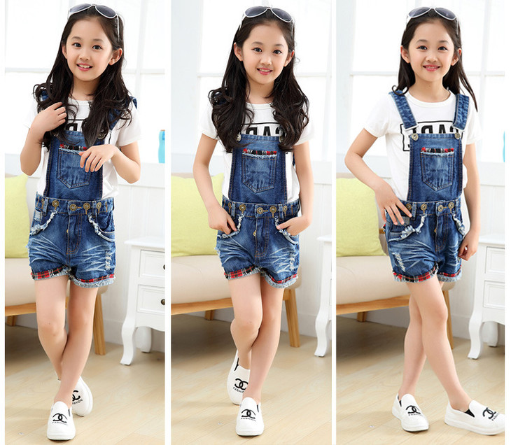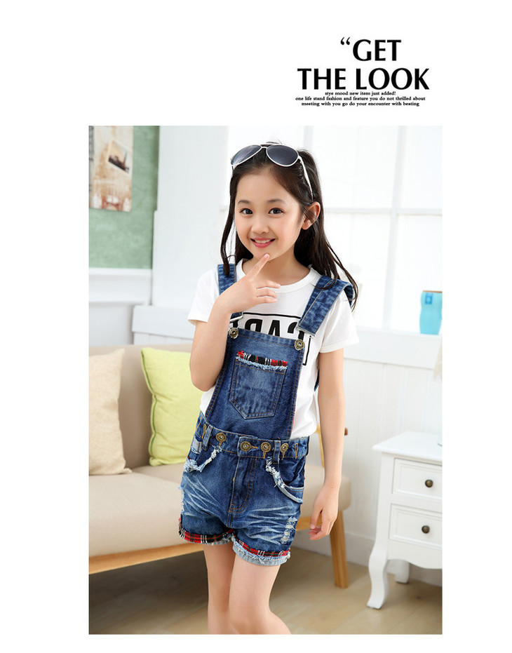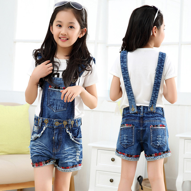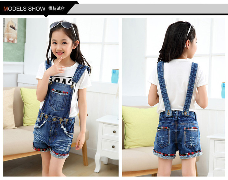 【裤子】新款女童无弹力牛仔背带短裤中大童短裤儿童牛仔吊带裤童热裤