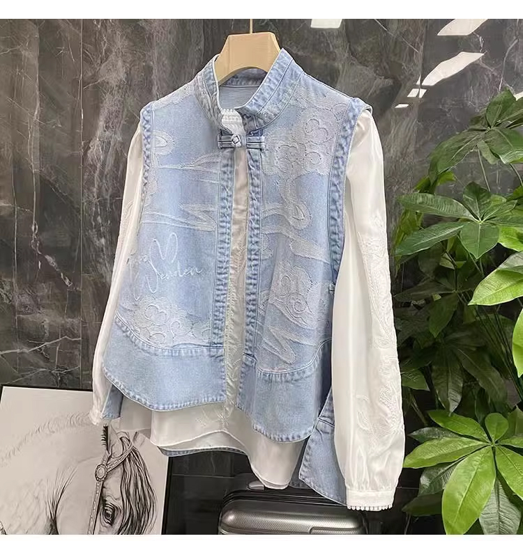 裁缝学苑AS253新中式盘扣牛仔马甲纸样背心立领女装新款上衣样板