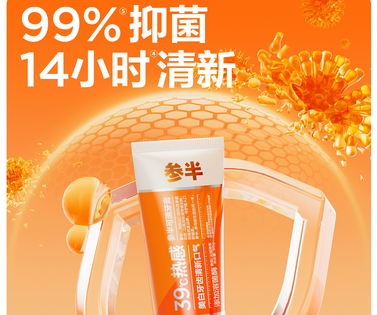 【春上新】9楼母婴生活馆 参半可清牙膏溶菌酶热感39°溶渍美白清新口气牙菌斑含氟成人95g 吊牌价:39.9元 活动价:33.9元