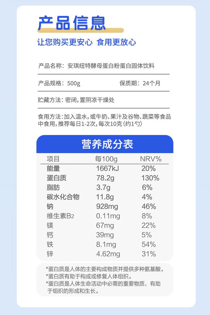 【2罐198】安琪纽特500g酵母蛋白粉 三种蛋白互补 均衡好营养
