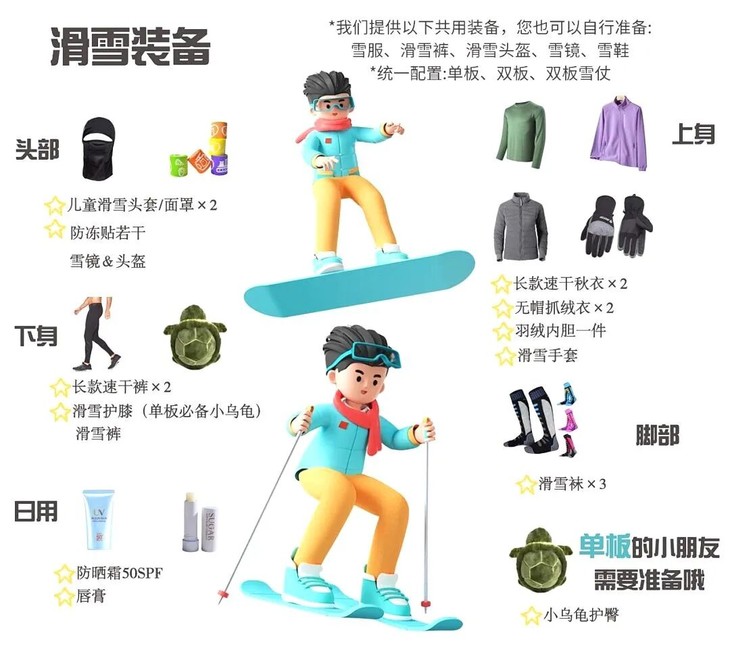 注:以上课程,组织方有权根据天气等因素做出适当调整,一切活动以营员安全为主,保证上雪总时长总量不变。