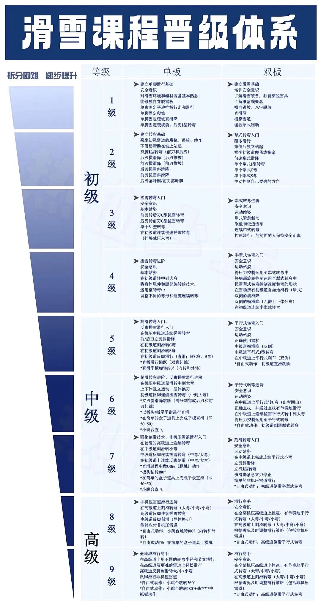 我们的课程核心,严格依据 “北京市冬季运动管理中心与北京市滑雪协会” 颁布的权威标准。