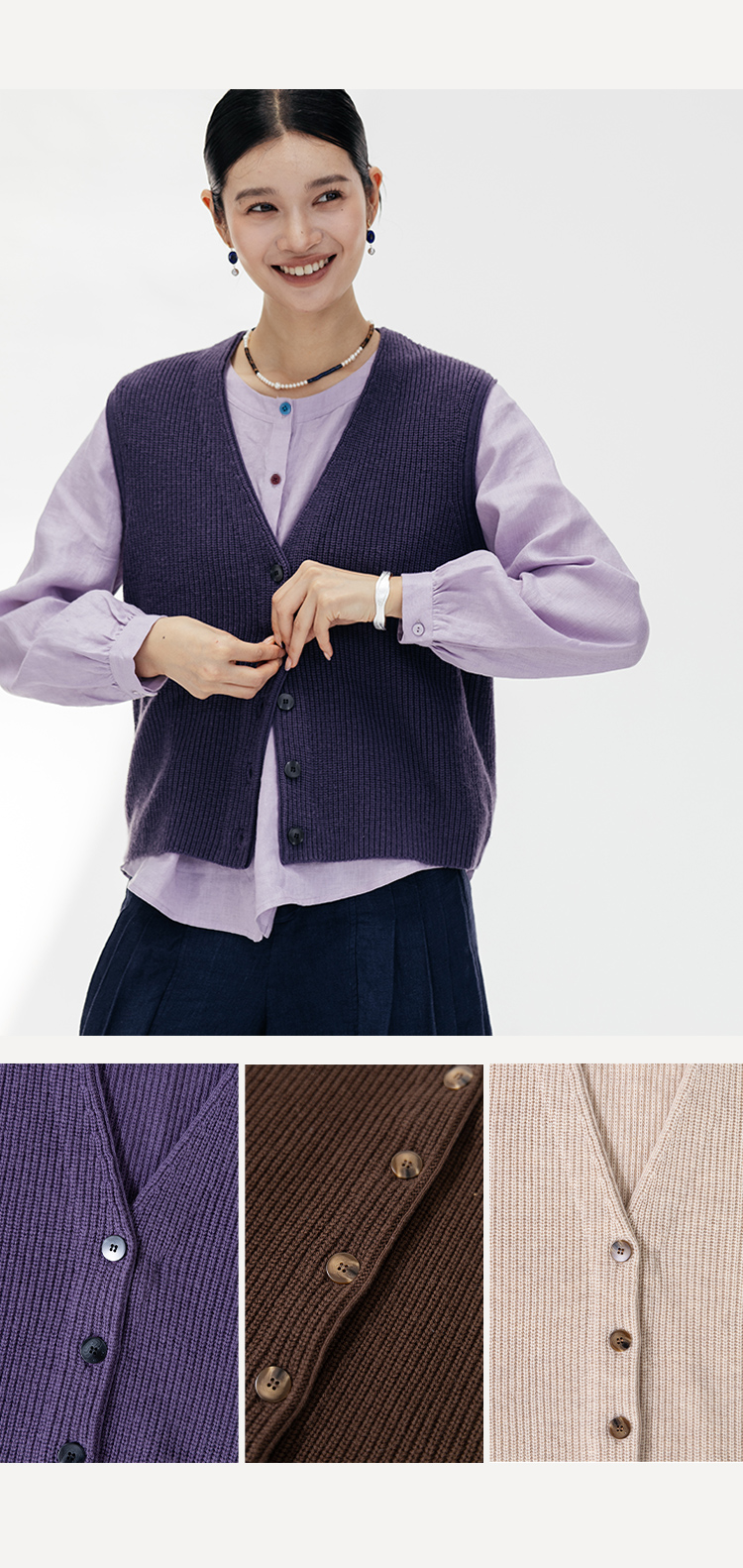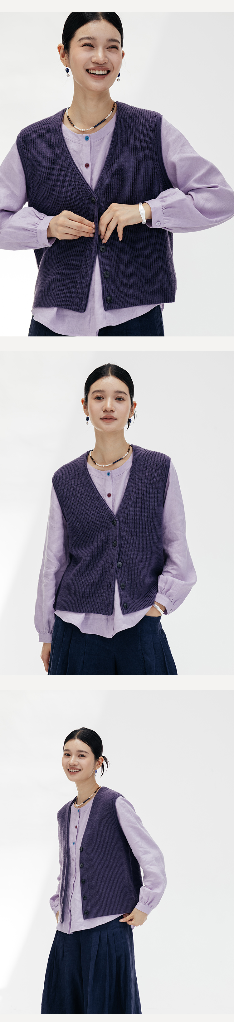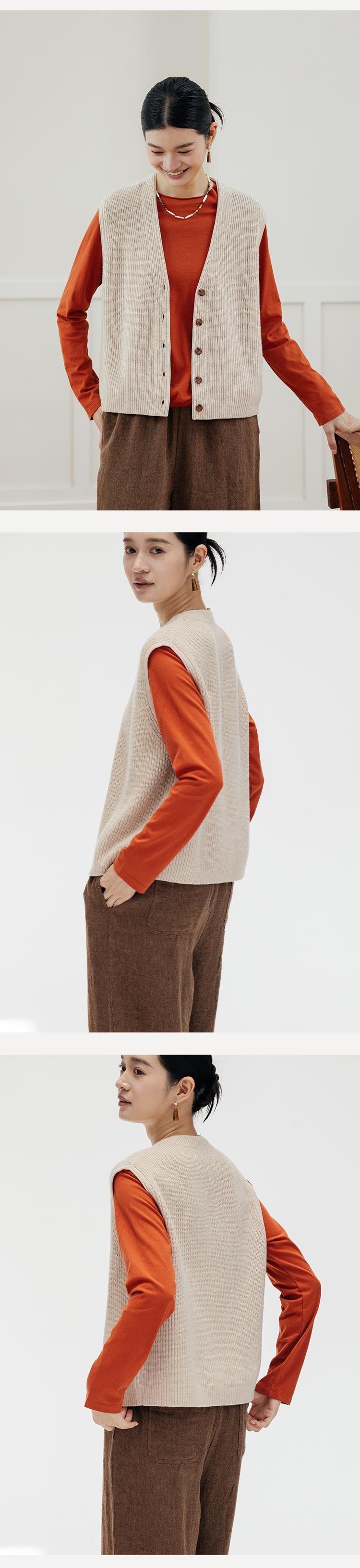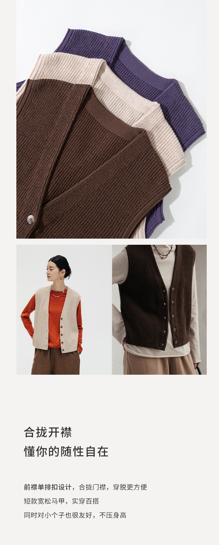 绽放669朵/知识分子*羊毛V领开襟单排扣弹力复古绒毛感马甲