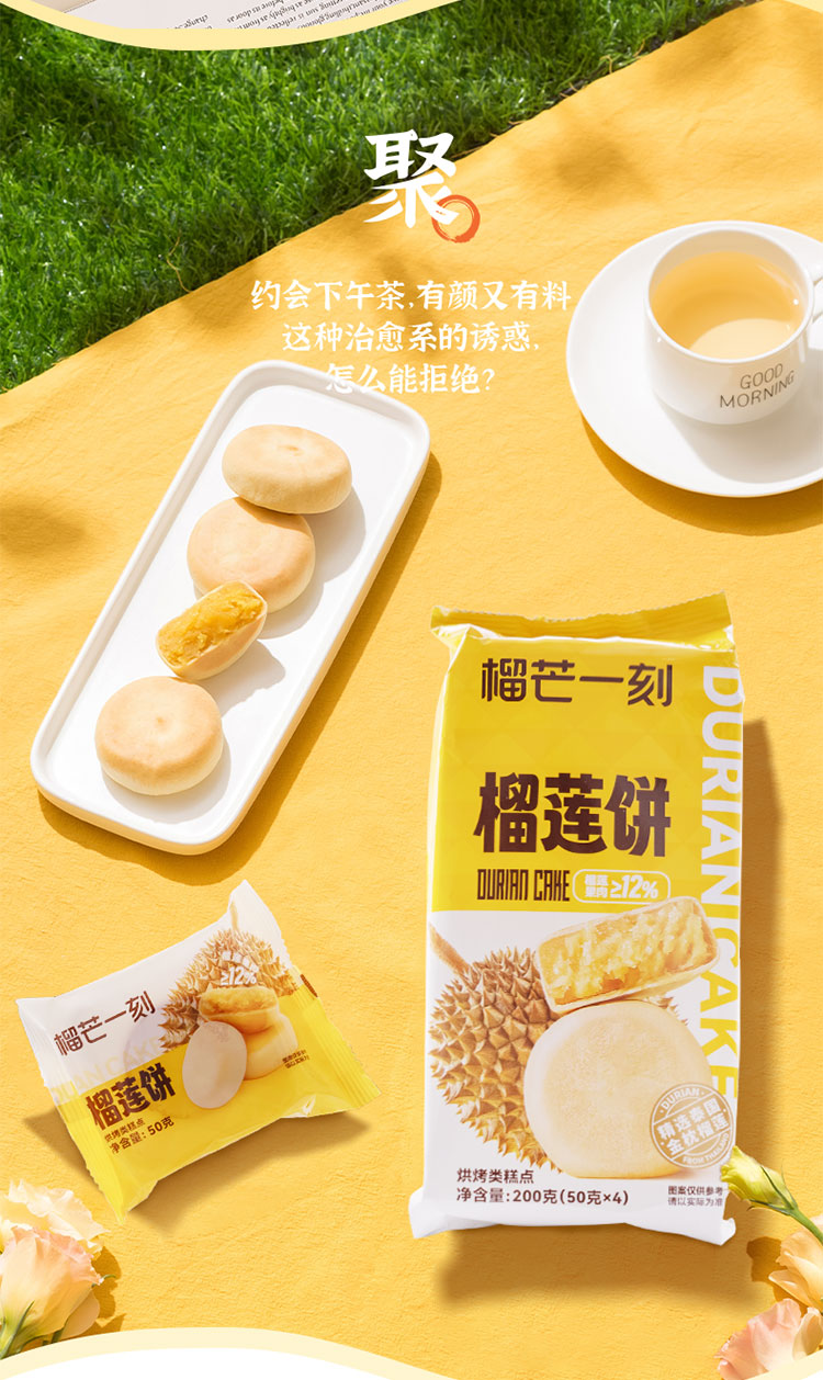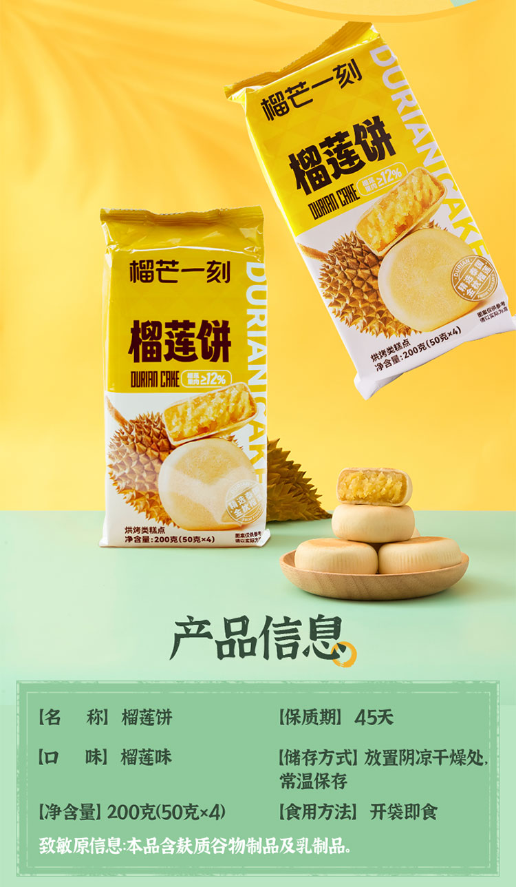 【流心榴莲饼】200克(50g*4枚)/袋|真实榴莲果肉,皮酥馅软