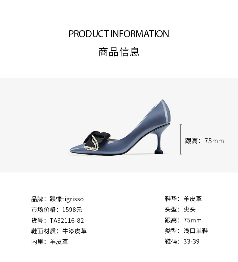 【2F】【新年礼物】蹀愫2022春新款蝴蝶高跟鞋女尖头婚鞋TA32116-82