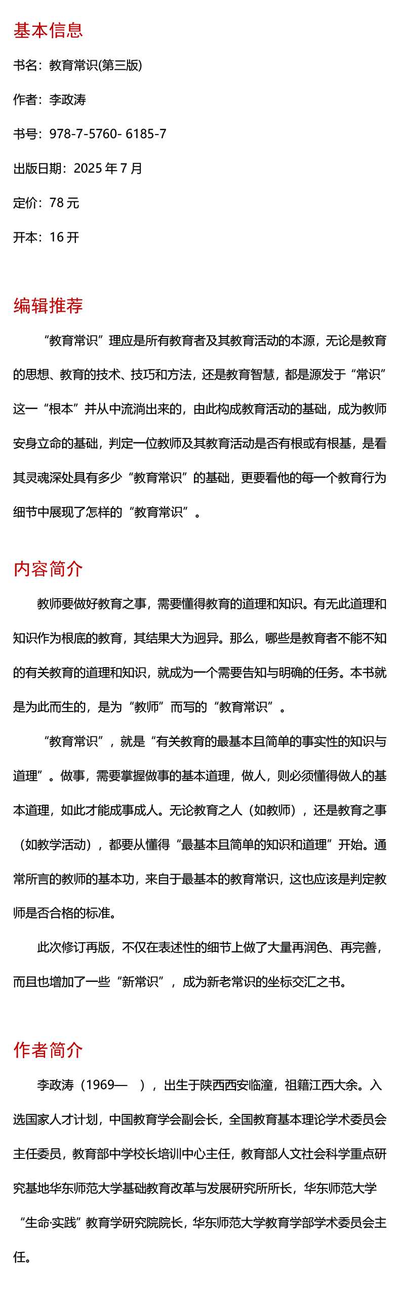 教育常识 第三版 李政涛 一线中小学教师阅读 教师发展