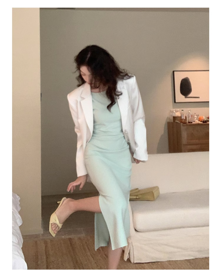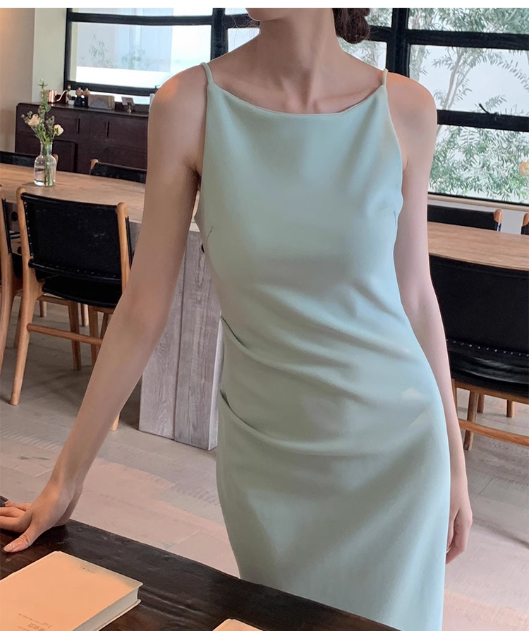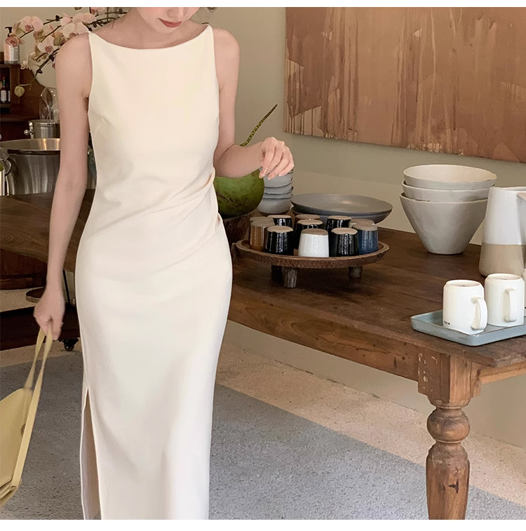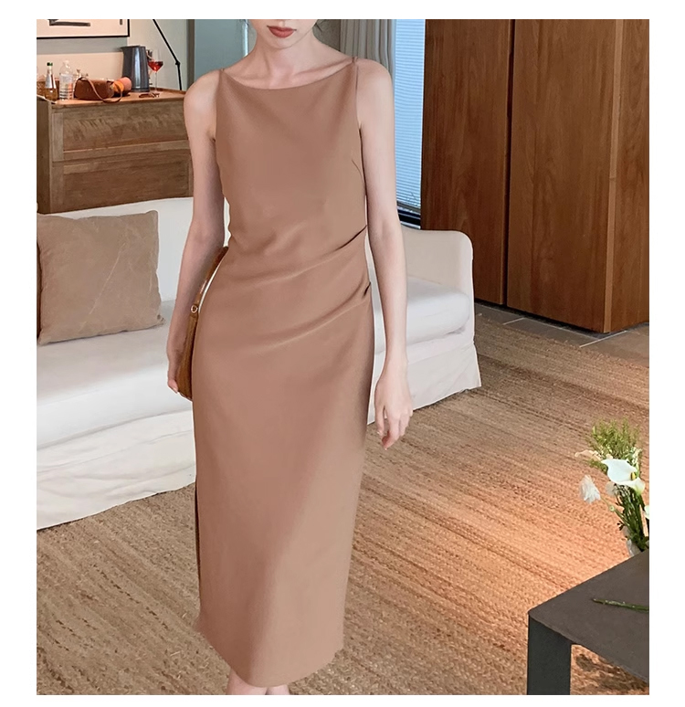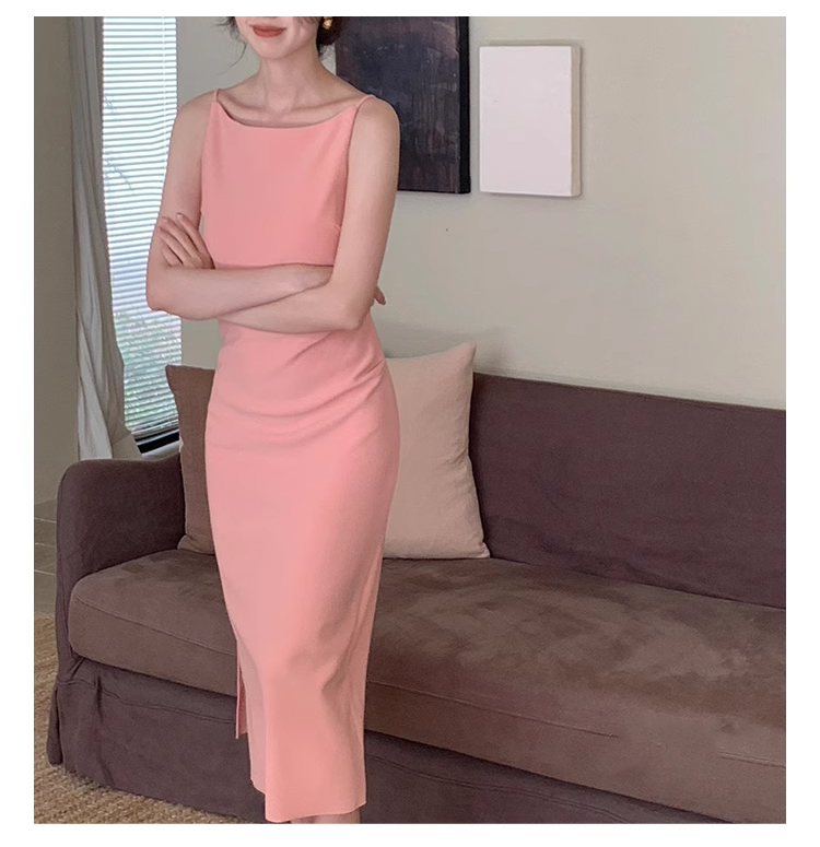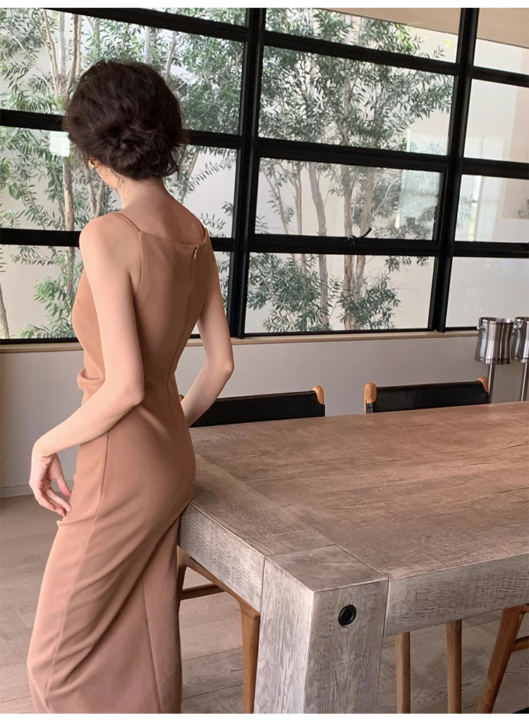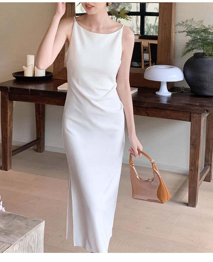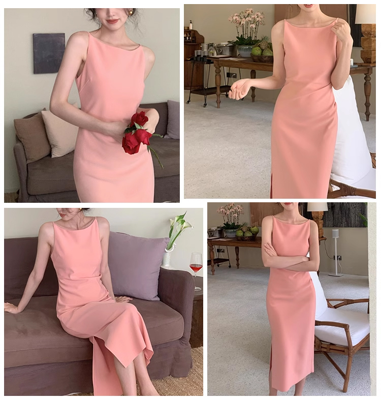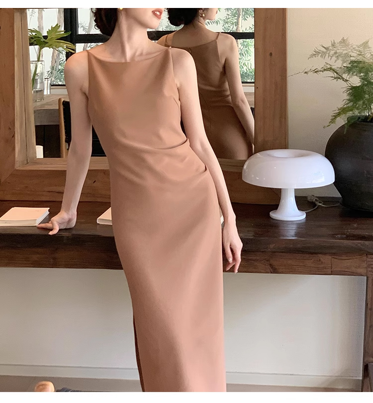 裁缝学苑AS327法式一字领收腰开衩连衣裙纸样女装吊带裙子样板
