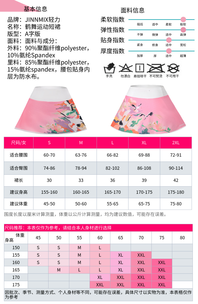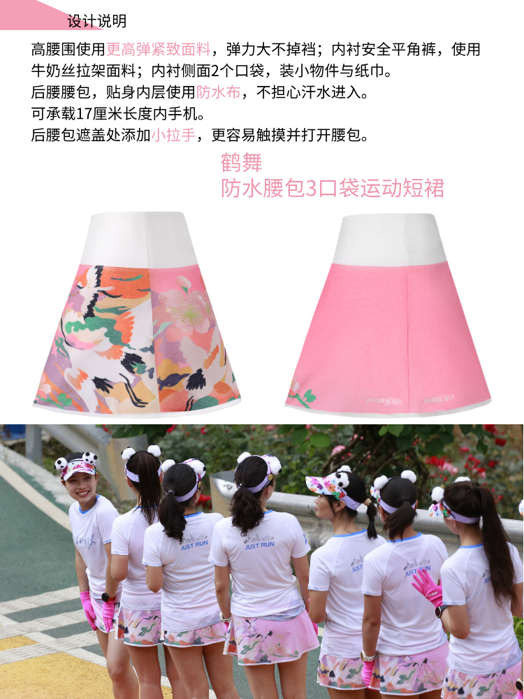 JINNMIX轻力鹤舞防水腰包内衬2口袋运动短裙