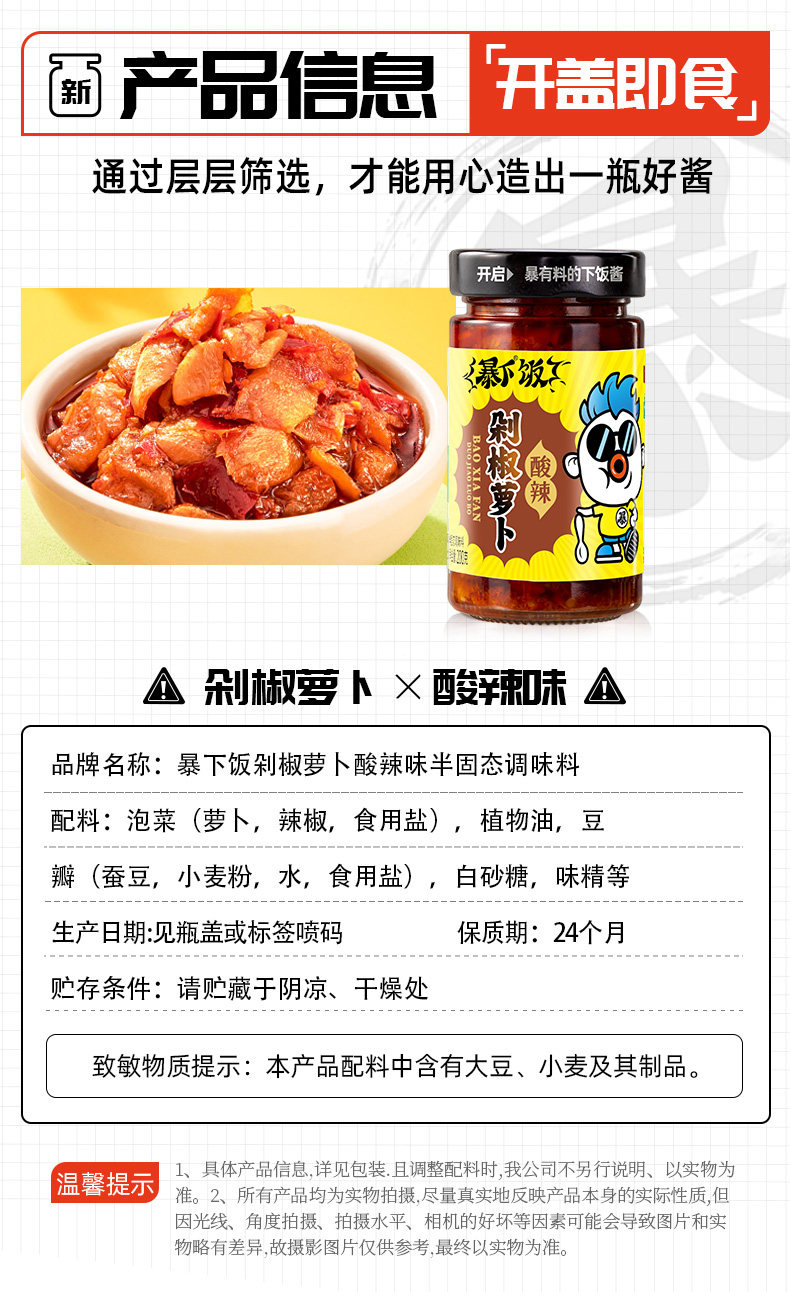 吉香居暴下饭酸辣剁椒萝卜200g酱拌面佐餐调味开味下饭酱酸辣拌面拌粉酱