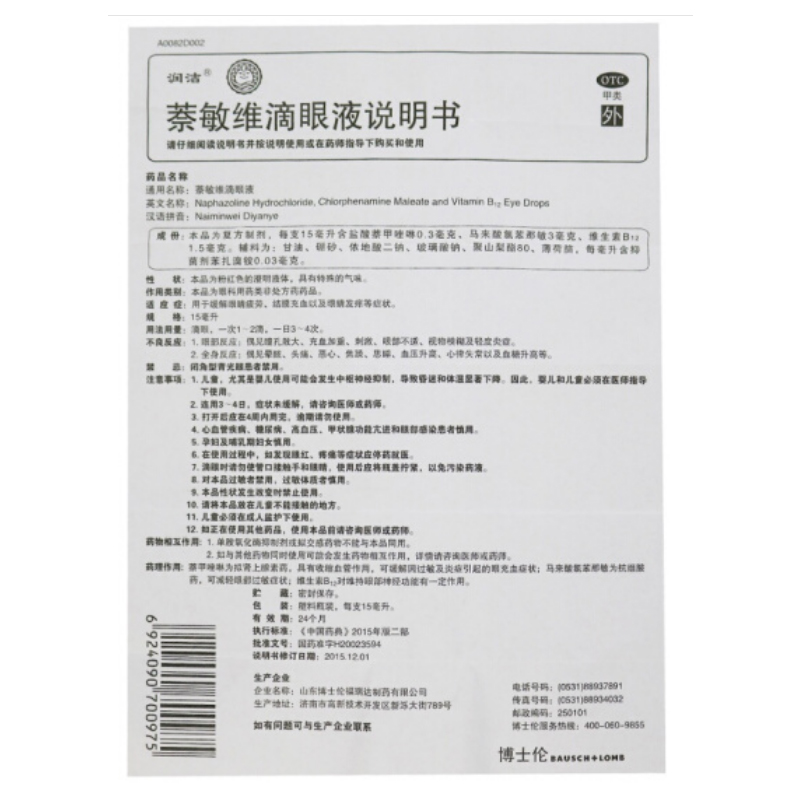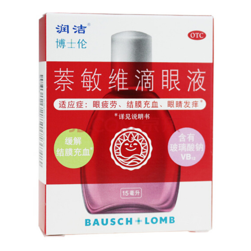 润洁博士伦萘敏维滴眼液眼药水15ml 眼疲劳结膜充血眼睛痒眼药水