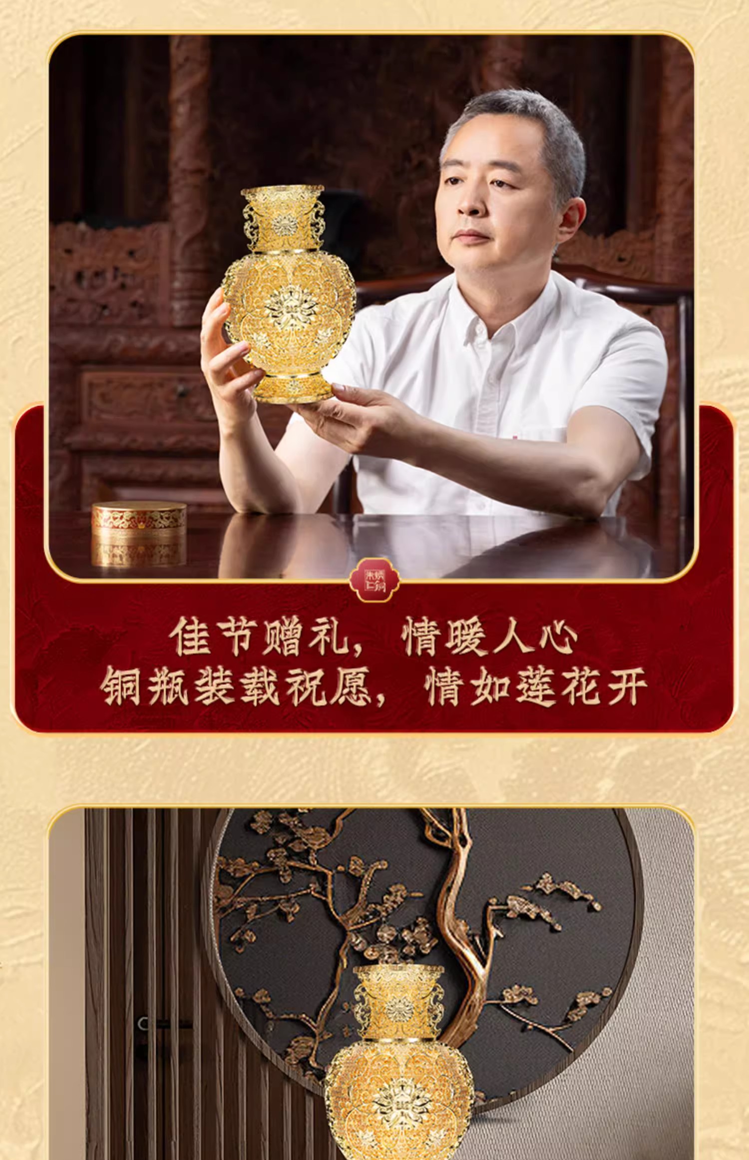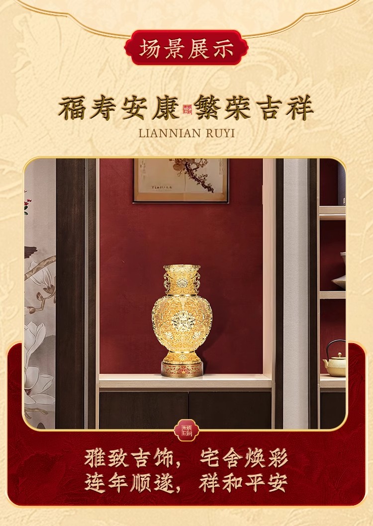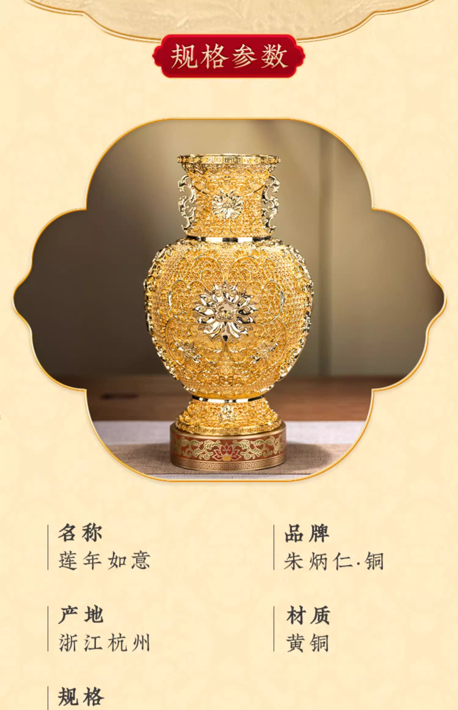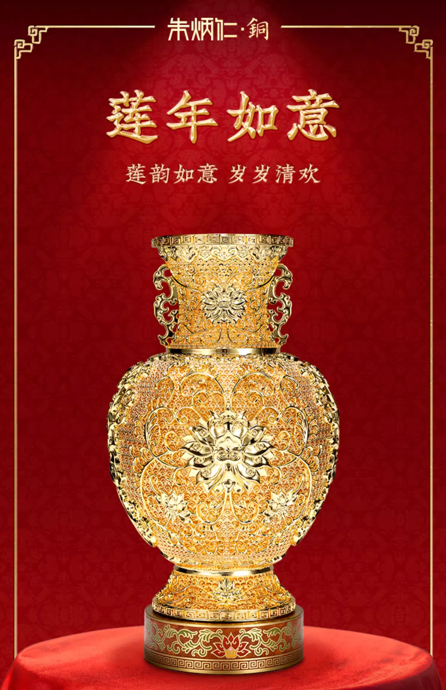 【预售】朱炳仁 丨莲年如意花丝花瓶黄铜摆件客厅玄关装饰摆件中式礼物乔迁开业 付款成功后7-15天发出