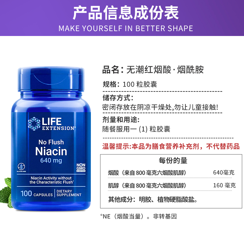 【临期2026/2月】沿寿LIFE EXTENSIO无潮红烟碱酸胶囊640毫克100粒