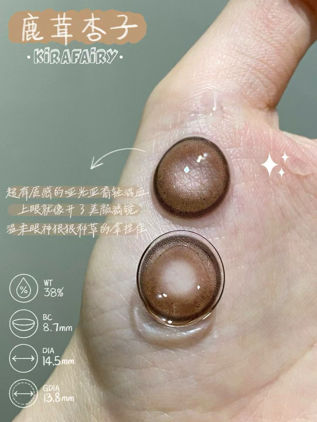 标注直径:14.5mm着色直径:13.8mm含水量:38%佩戴期限:半年型(建议六个月)可配:0-800度(无525/575)工厂:icodi含硅水凝胶