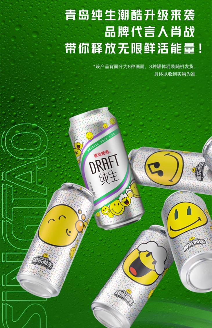青岛啤酒纯生小麦啤酒500ml/罐笑脸款