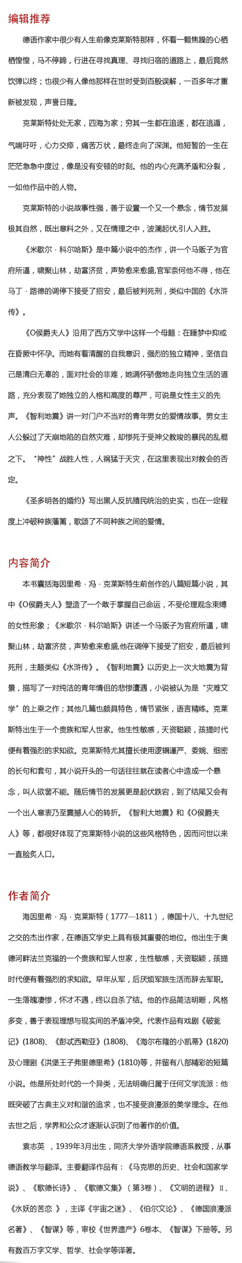智利地震 克莱斯特小说全集 独角兽文库 典雅精装 八篇短篇小说 灾难文学 外国文学