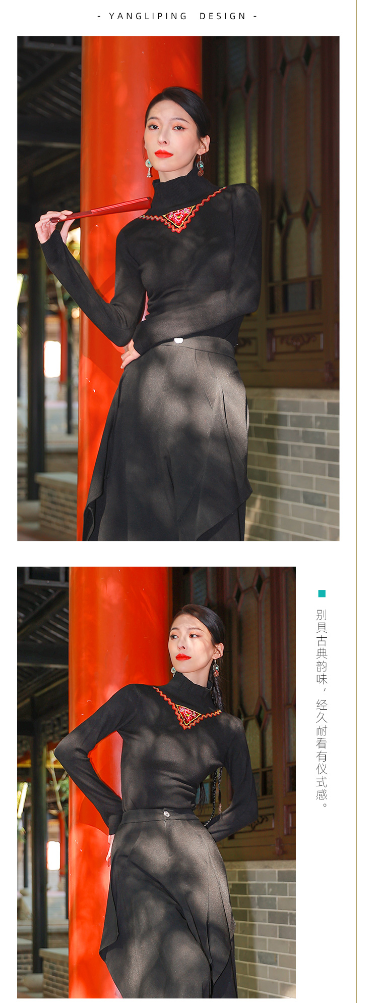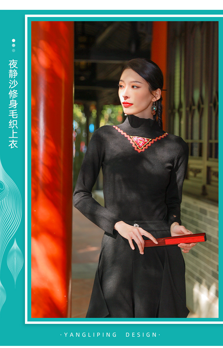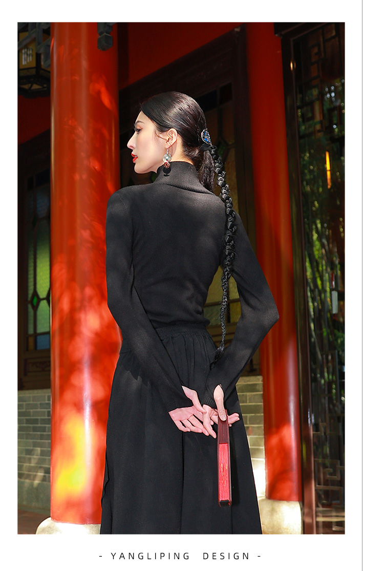 归尘系列—夜静沙修身毛织上衣打底衫 | 黑色 |现货