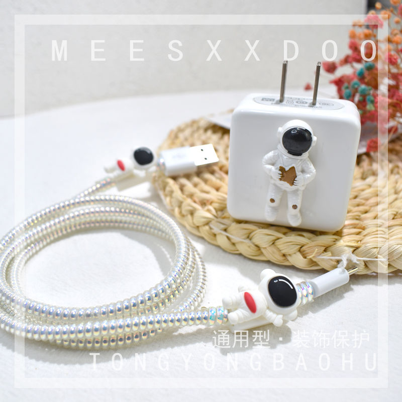 卡通宇航员华为vivo小米数据线保护套荣耀苹果iPhone13耳机充电器缠绳