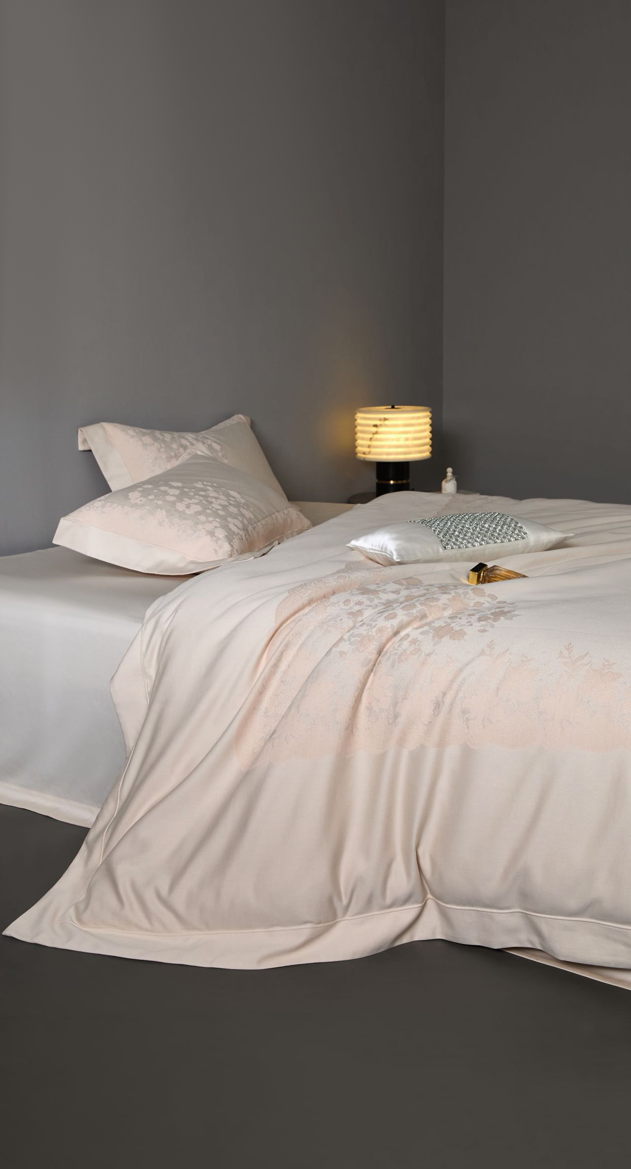# 紫烟花缕 #棉麻床品 #春夏床品 #暗纹提花 #卧室好物