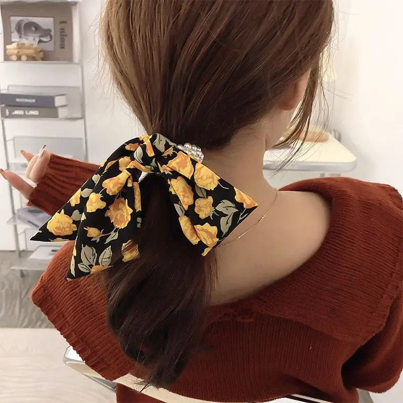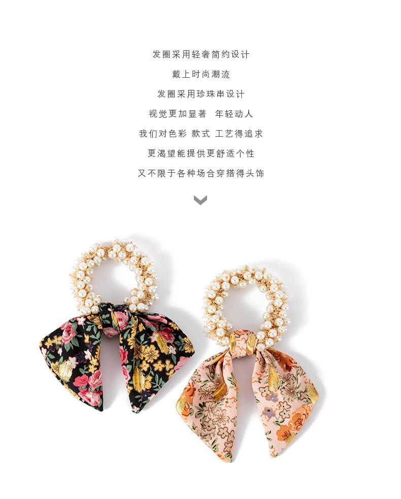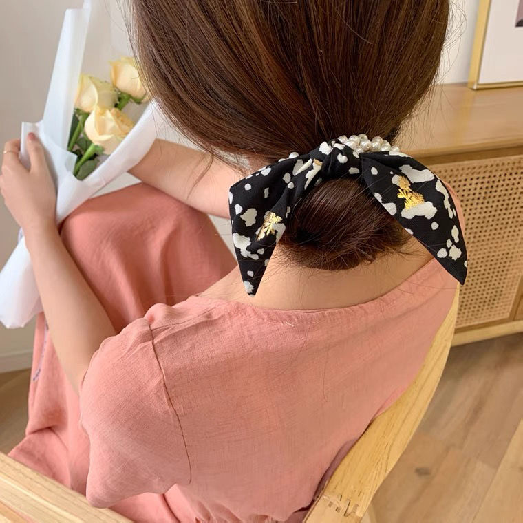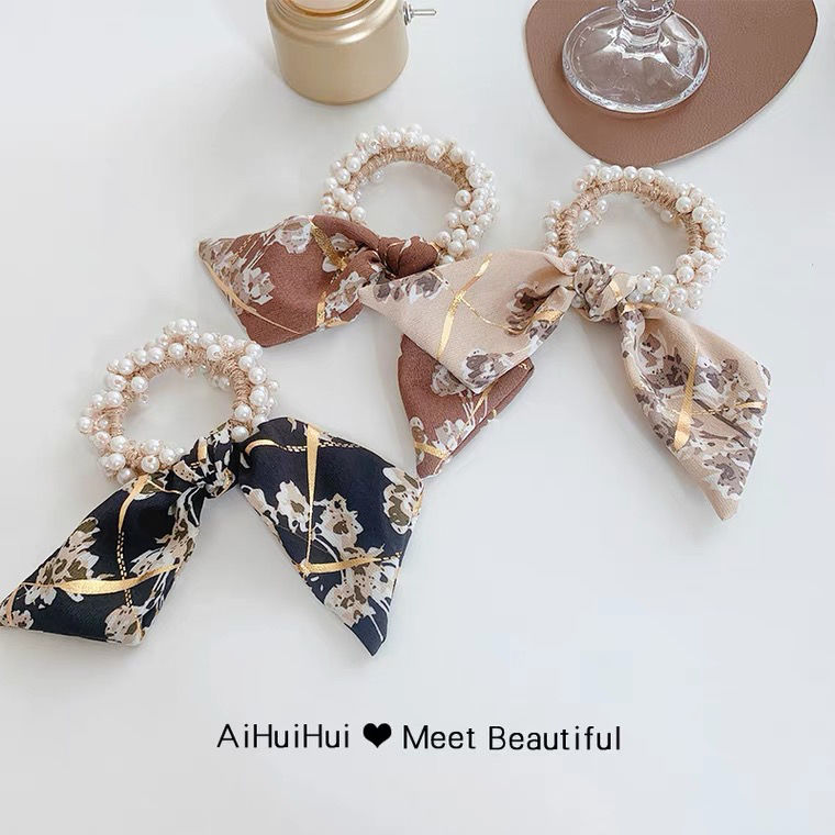 「两只装」简约百搭蝴蝶结珠发圈飘带 少女皮筋头绳飘带