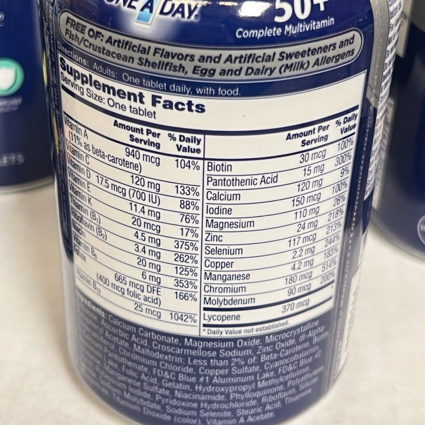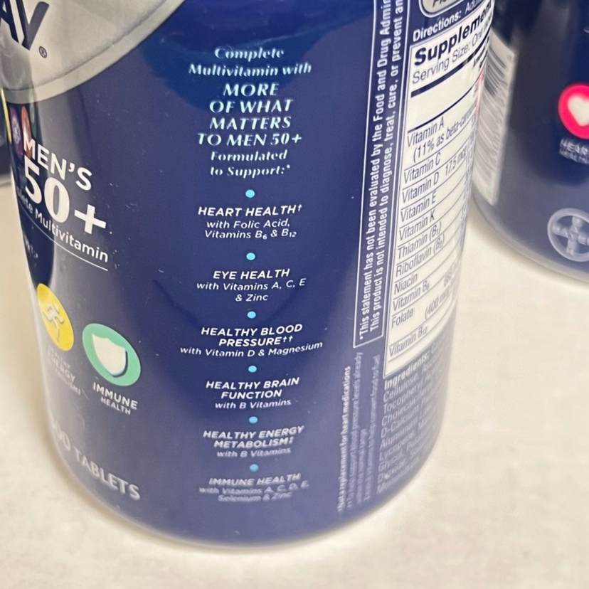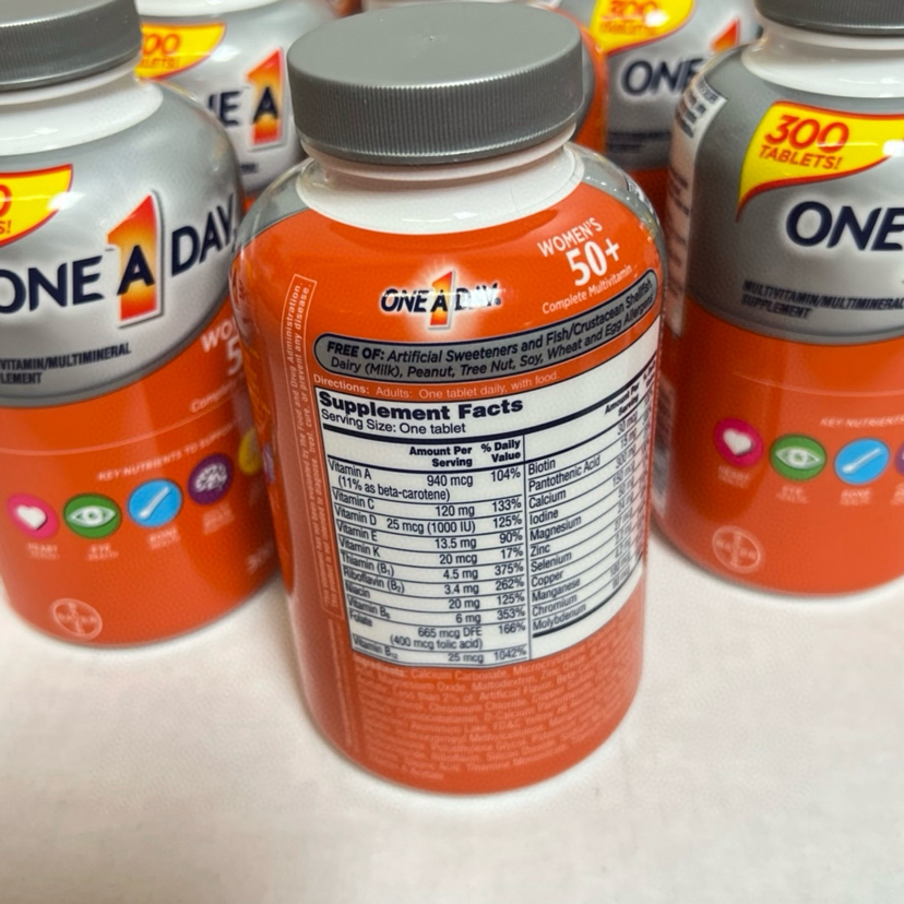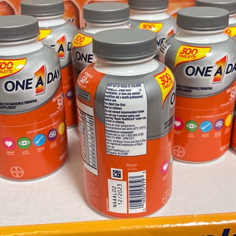 折扣特价📣提高免疫力❤300粒最新包装❤美国✈直邮男士多维50岁特价1瓶258元,女士多维50岁 258元🉐包税包邮到手🔥🔥拜耳One A Day每日一粒多维。1瓶可以吃6个月,50岁以上老年人。蓝色是男性:抗癌,心脏健康,眼睛,免疫力,维持血压正常;红色是女性:抗癌,心脏健康,眼睛,提高免疫力,维持血压正常,骨骼和关节健康,300粒,每日1粒,一瓶可以吃7个月,送长辈,送爸妈不错选择~