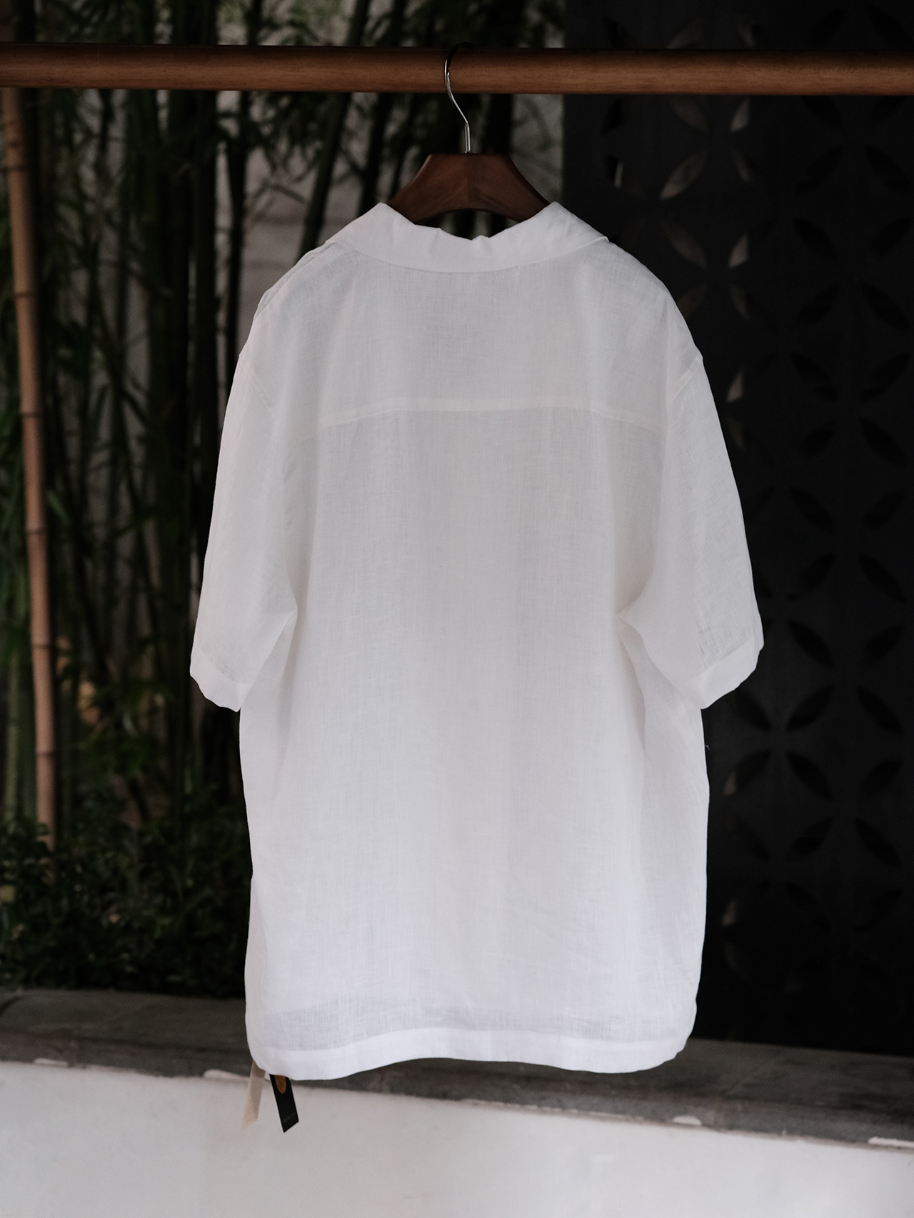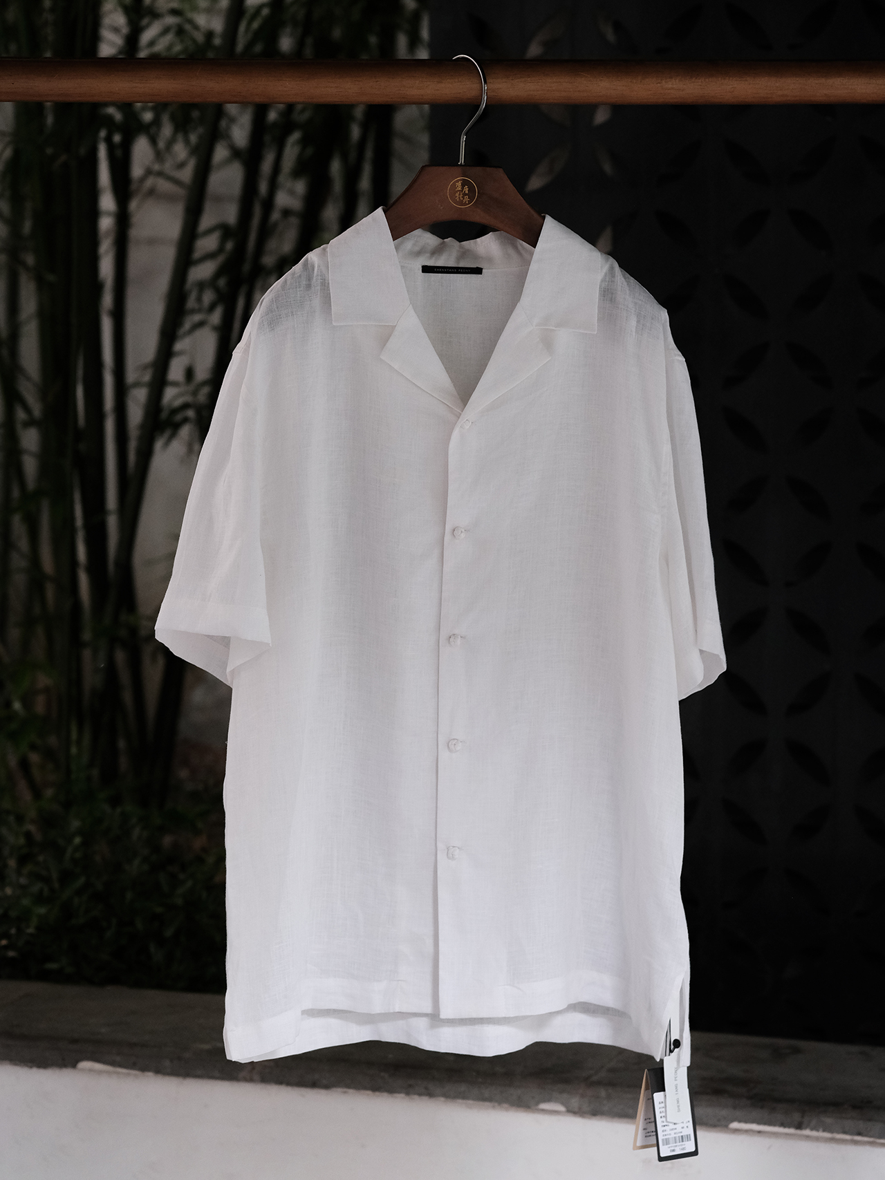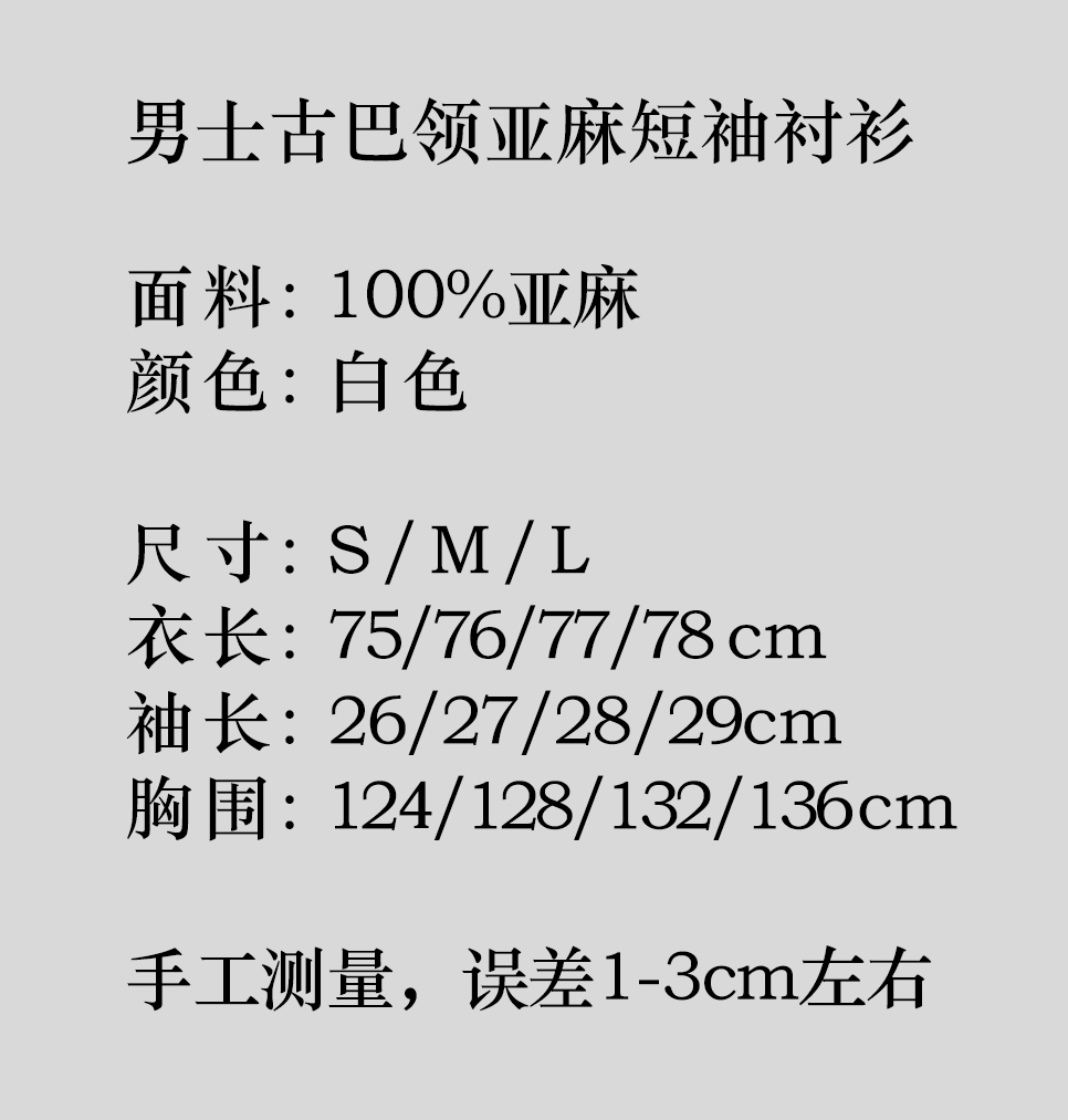盛唐牡丹 |男款尝鲜价 |男士古巴领亚麻短袖衬衫-白色