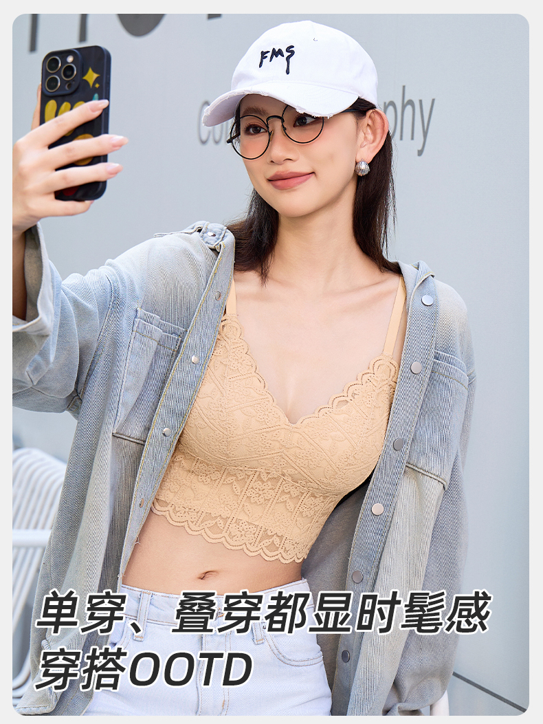 雅黛俪背心式女士文胸性感蕾丝固定三角杯内衣胸罩