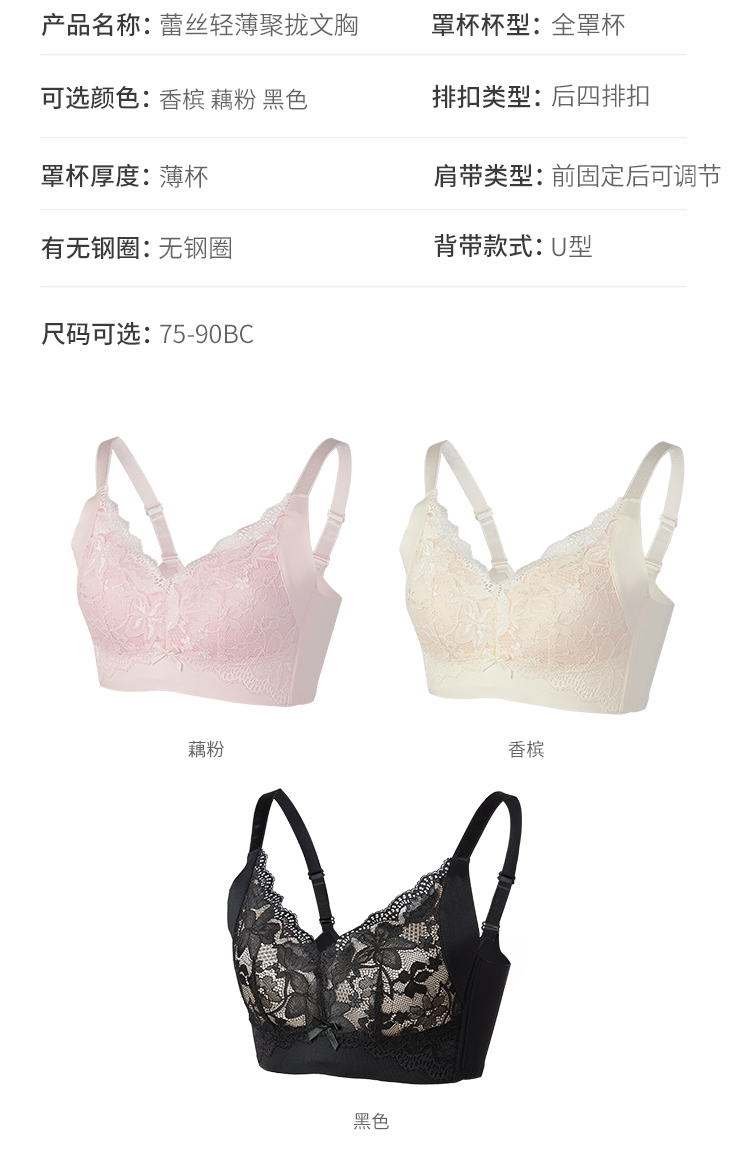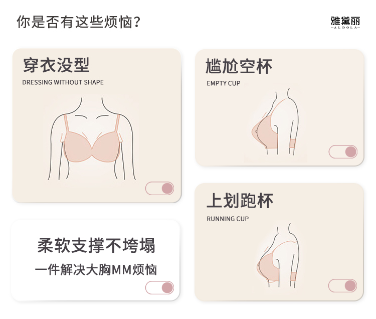 雅黛丽内衣女夏季薄款大胸显小文胸收副乳聚拢防下垂调整型胸罩