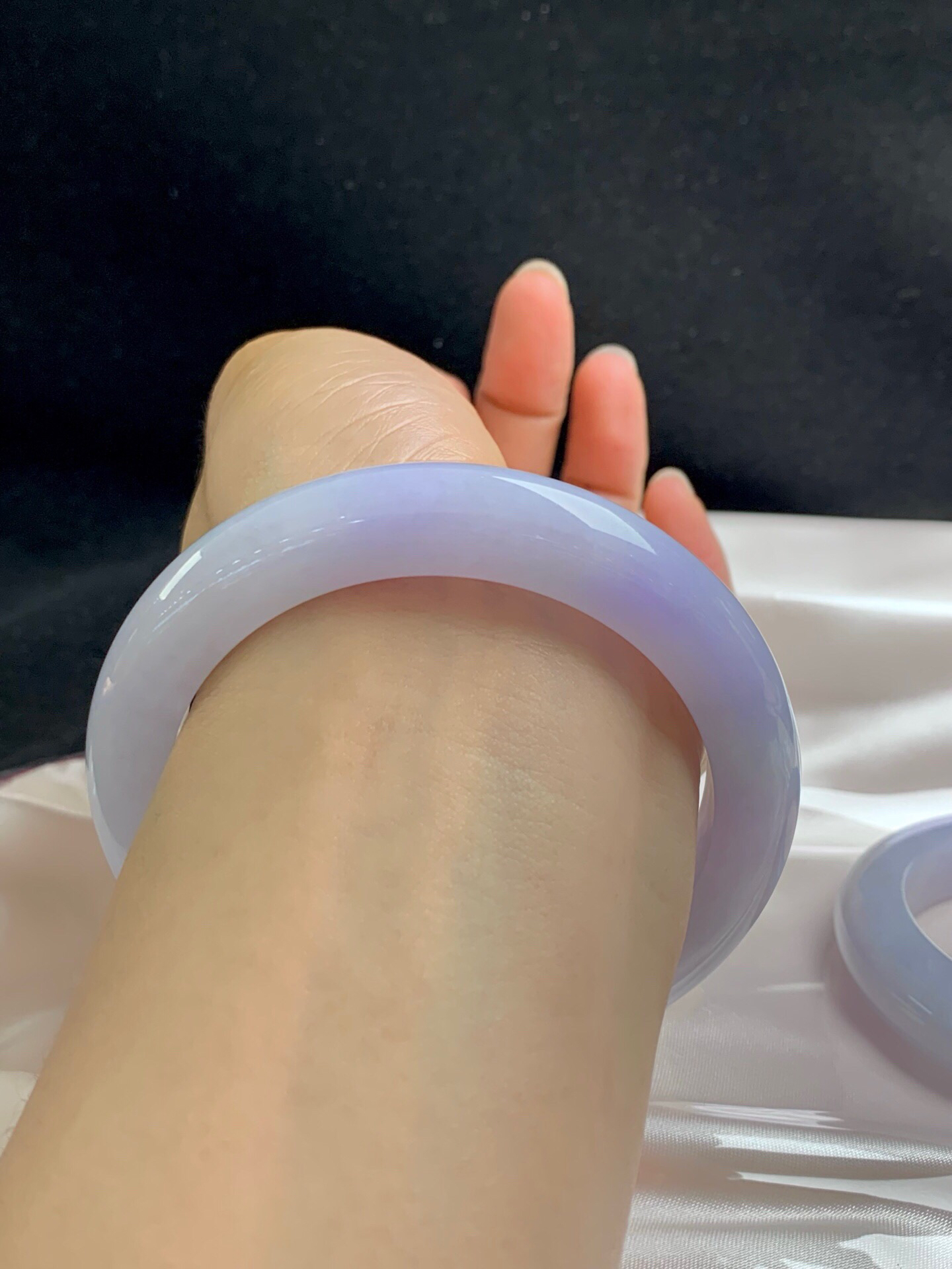 620738,55.8 晴底宽版正圈手镯,14.3-8.5mm,宽版手镯、整条带浅浅的底色,底子均匀干净完美,上手很大气!