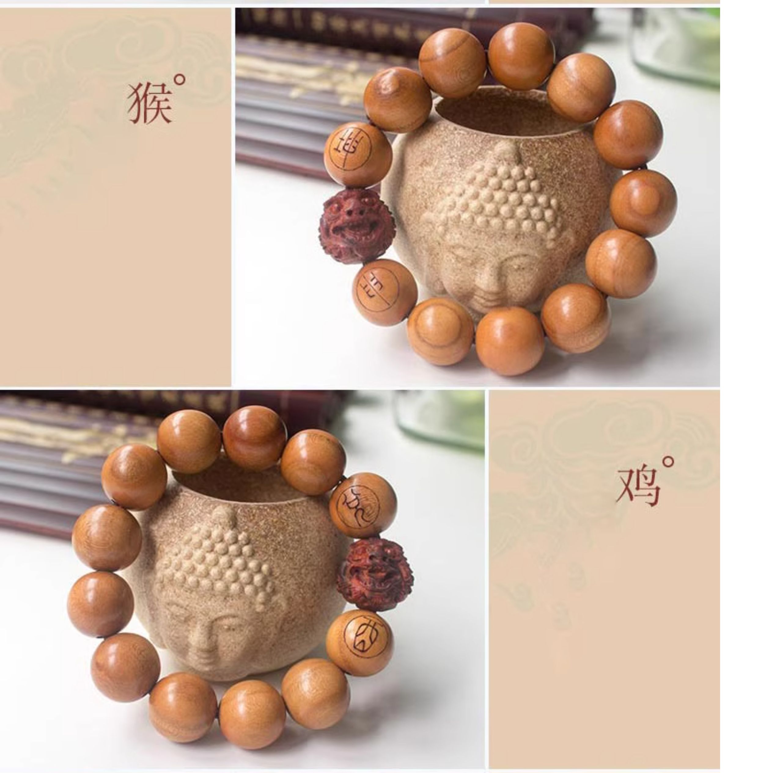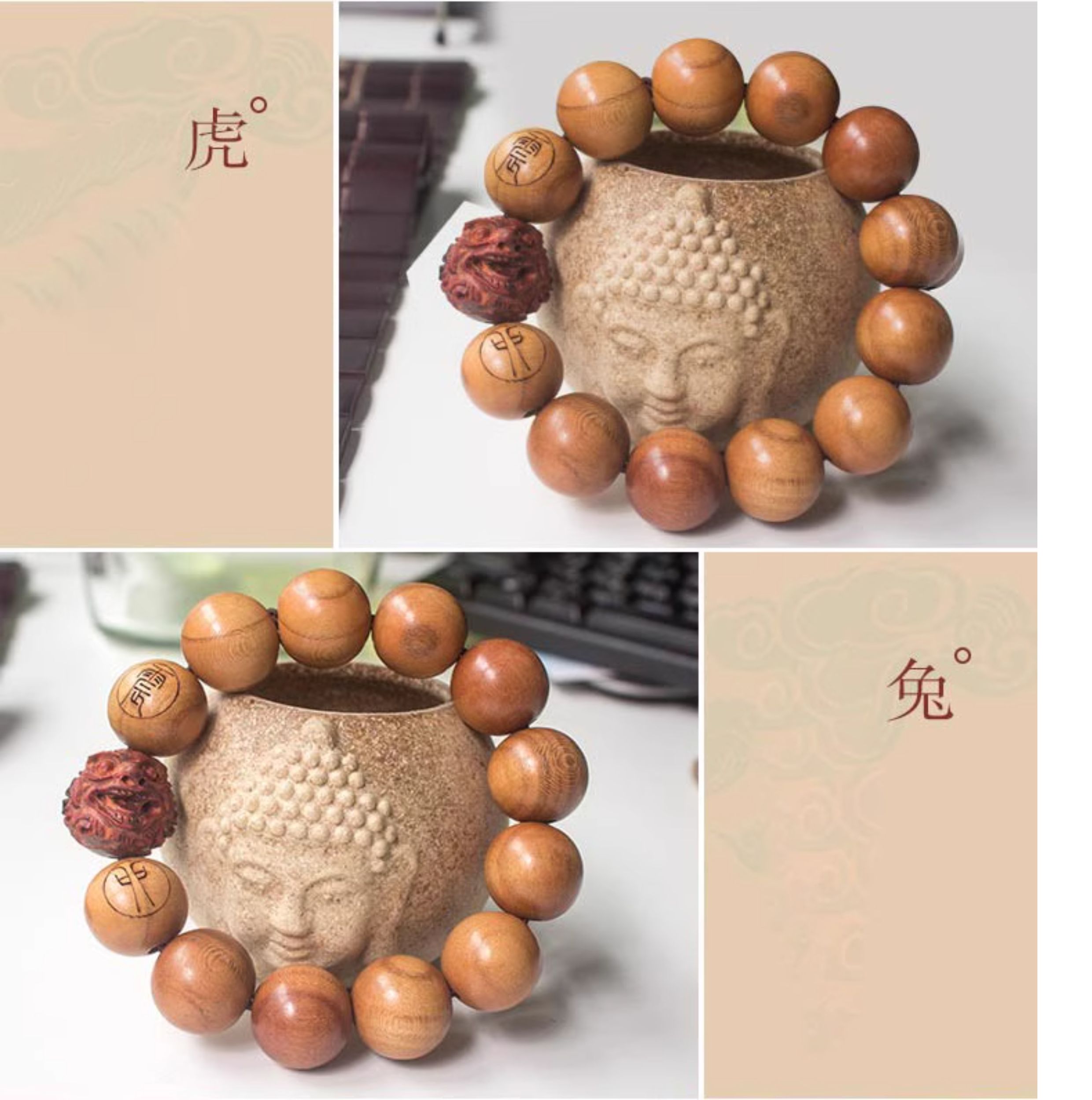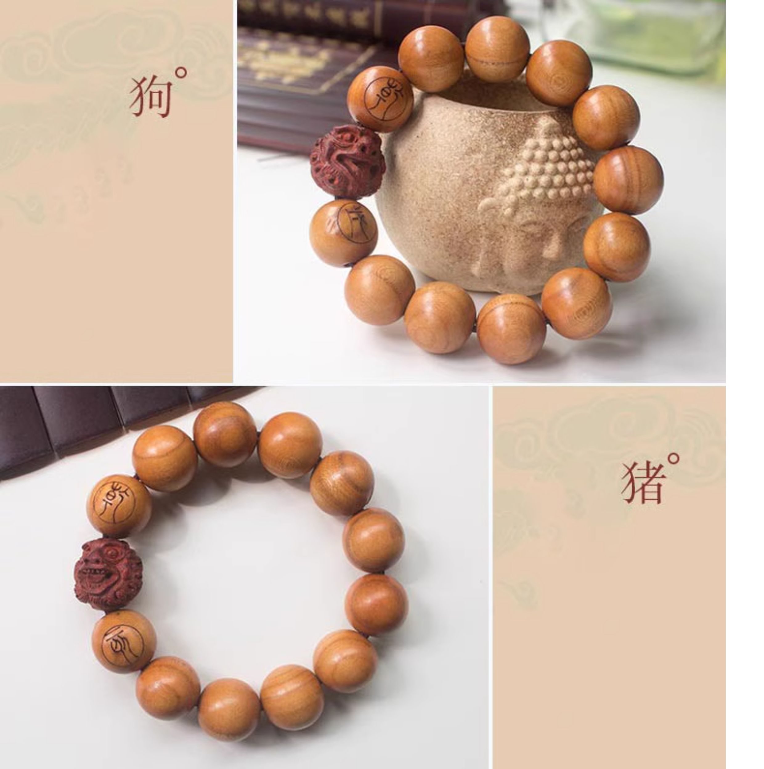 【祈愿吉品】原木桃木貔貅佛珠男款 十二生肖小叶紫檀