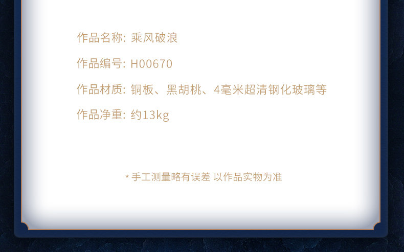 铜师傅 手工錾刻 铜雕画《乘风破浪》装饰画