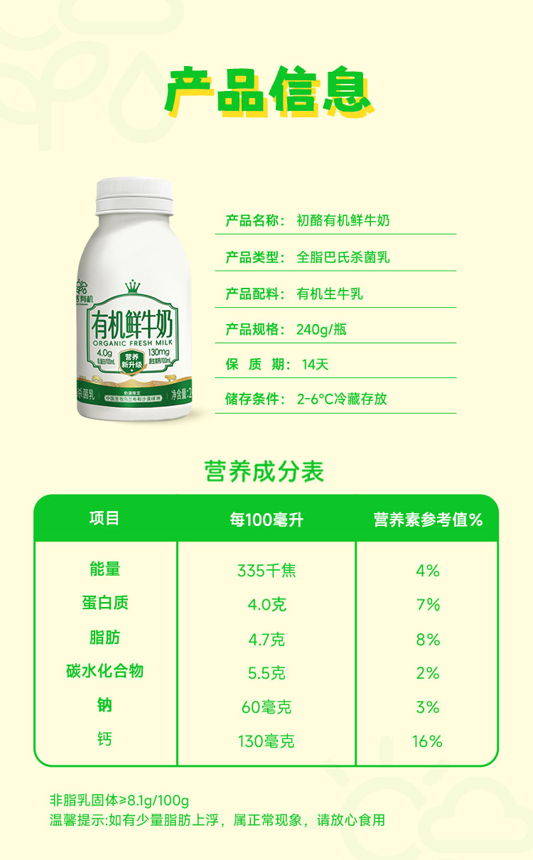 包邮【厂商直发】初酪鲜奶纯牛奶低温巴氏杀菌内蒙古鲜奶240gX8瓶装