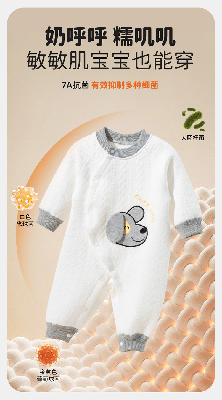 贝贝怡【7A抑菌】2024秋冬新款婴幼连体服舒适保暖侧开哈衣爬服ZB4DL053