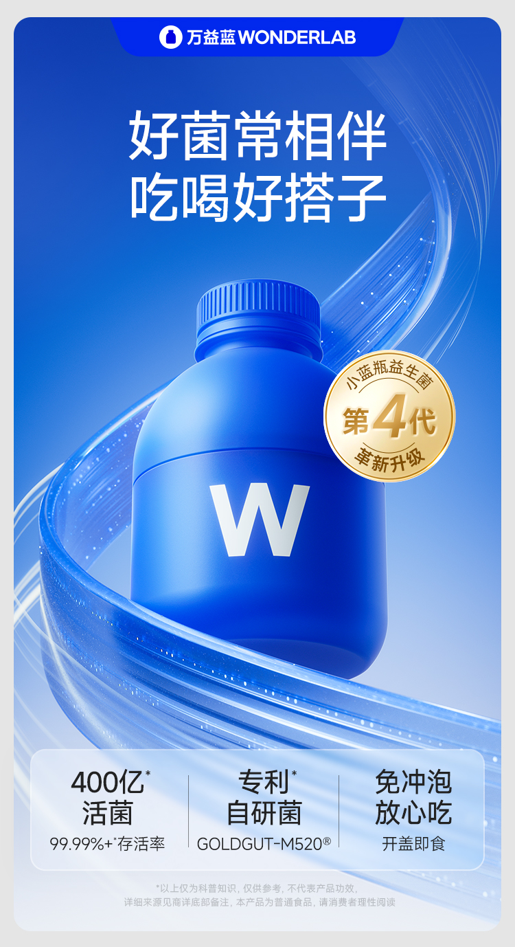 【快抱专属】万益蓝 WonderLab 小蓝瓶全能即食益生菌大人肠胃冻干粉