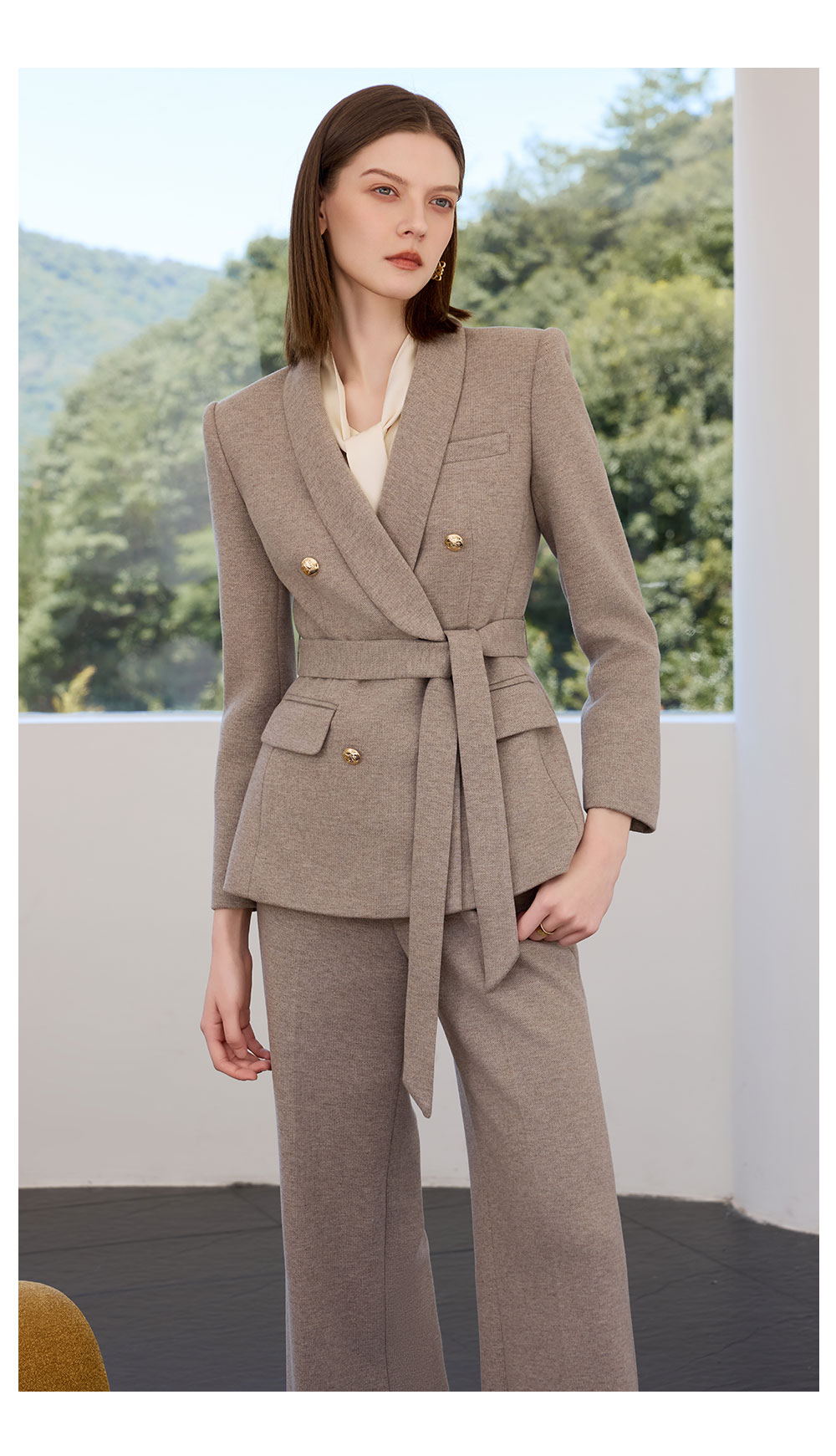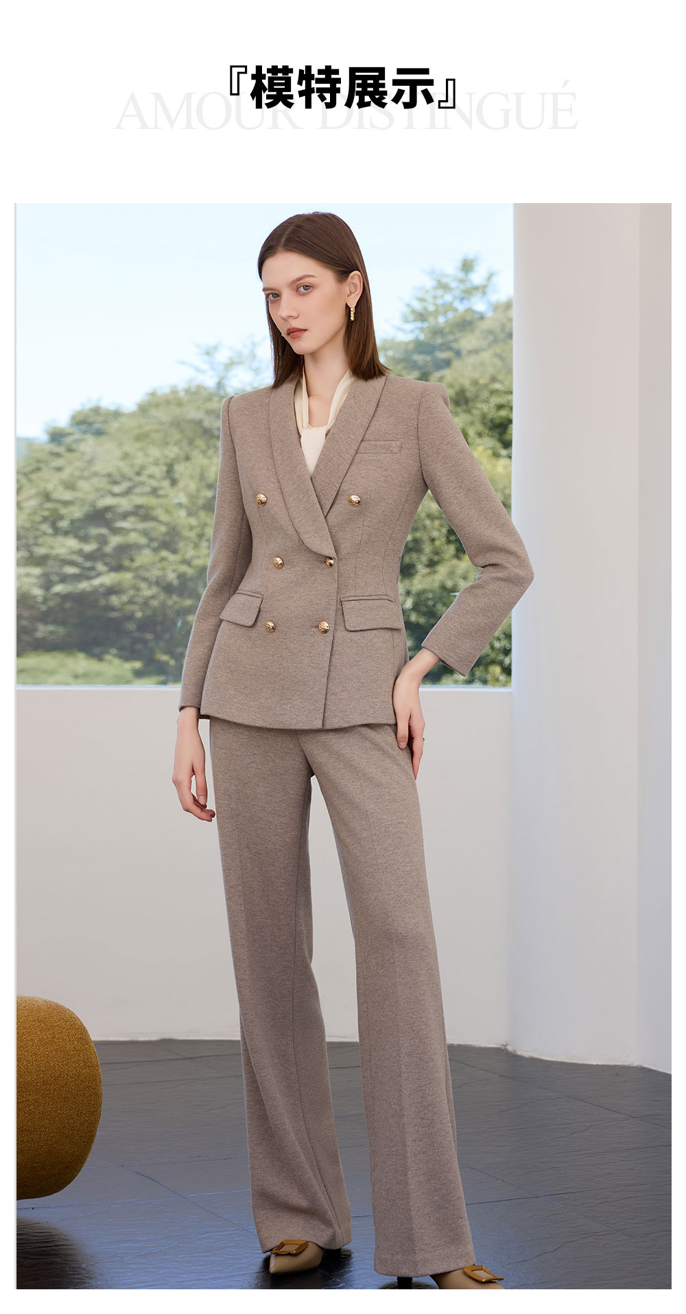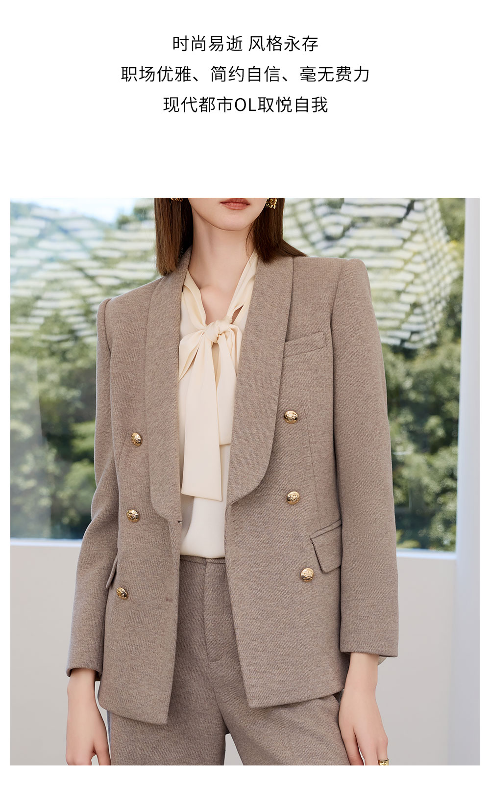 AD秋冬燕麦色系带西装套装女2025新款轻奢羊毛呢子西服外套职业装