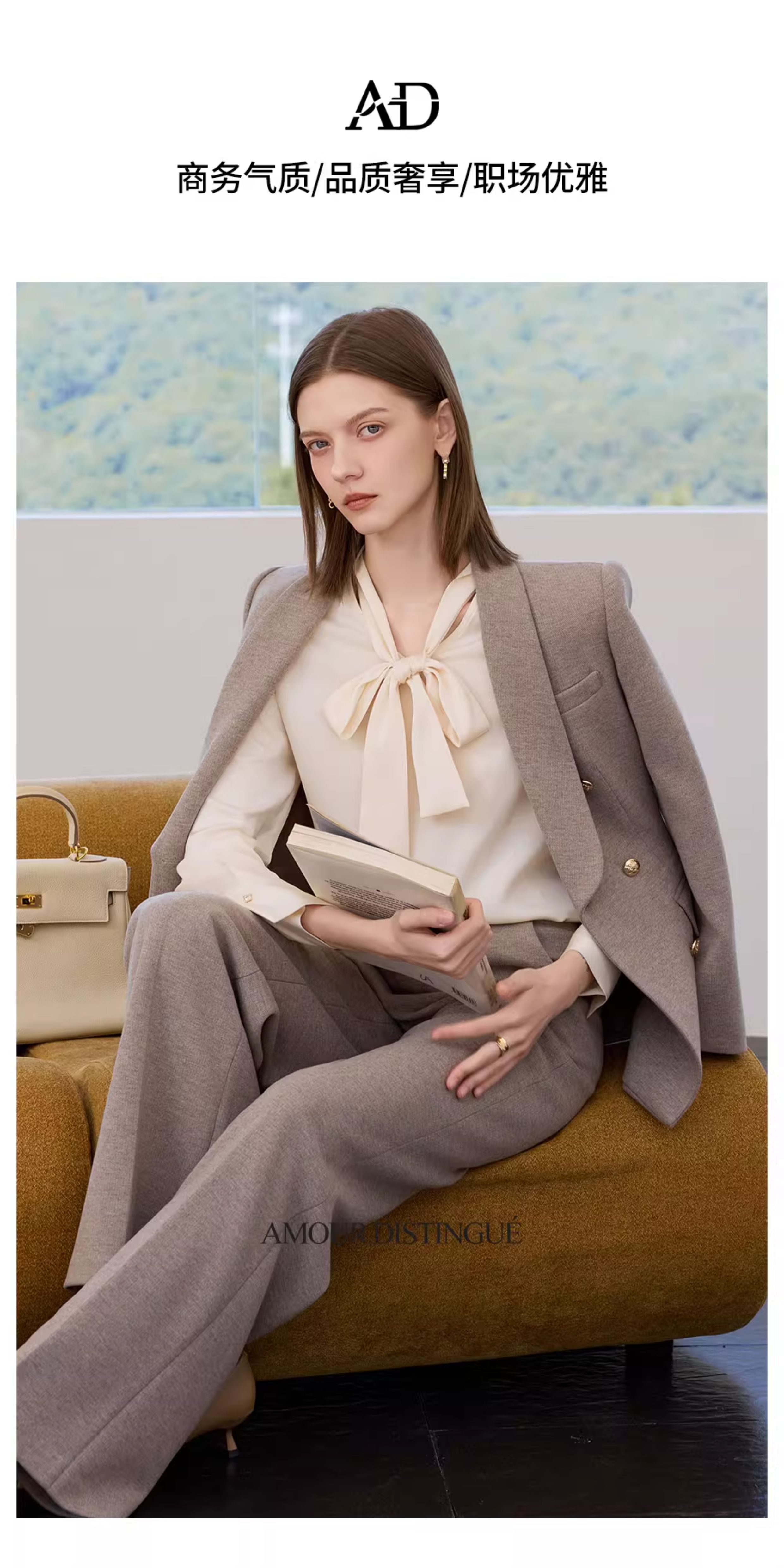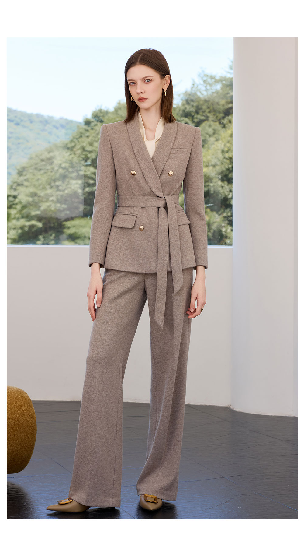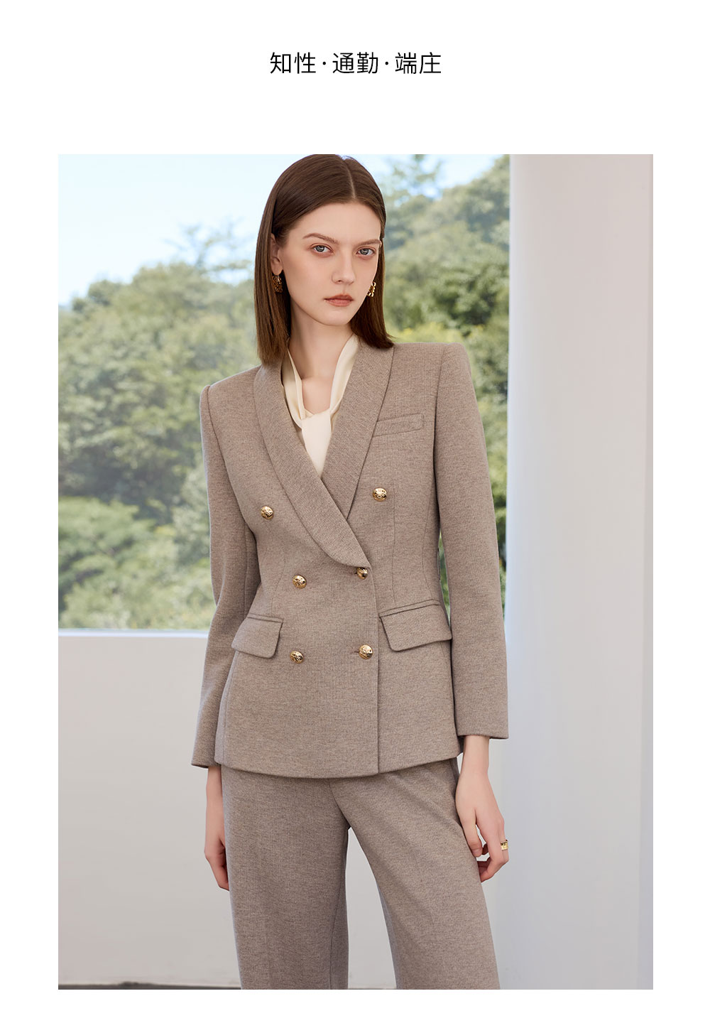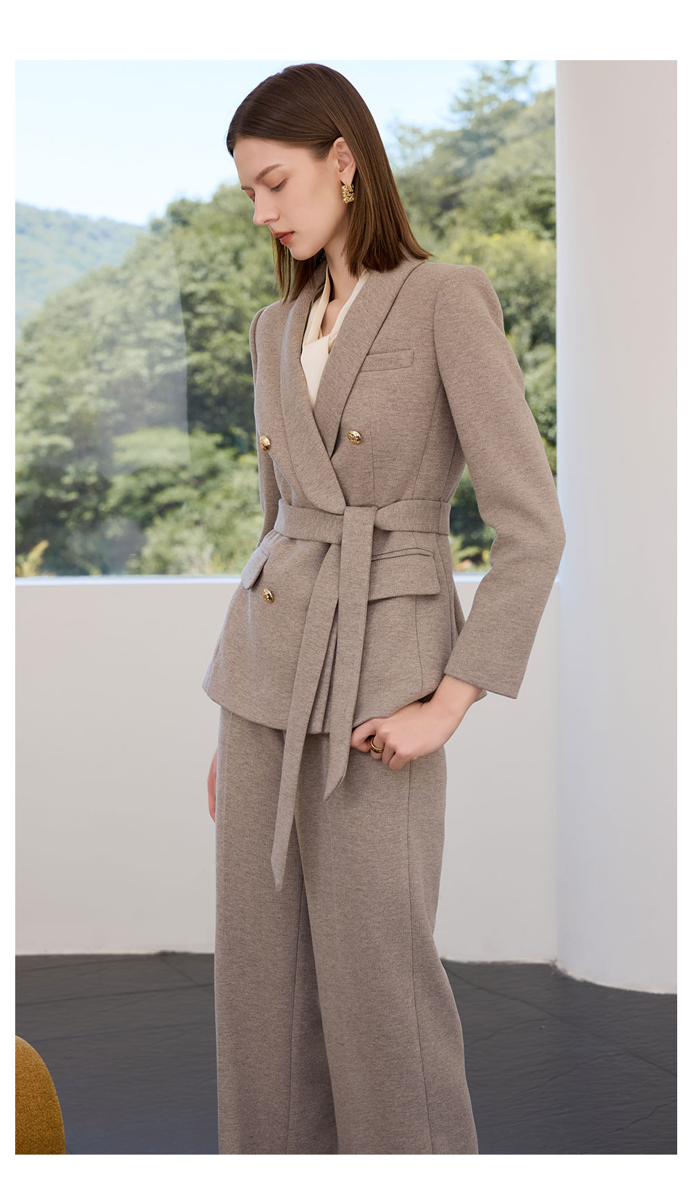 AD秋冬燕麦色系带西装套装女2025新款轻奢羊毛呢子西服外套职业装