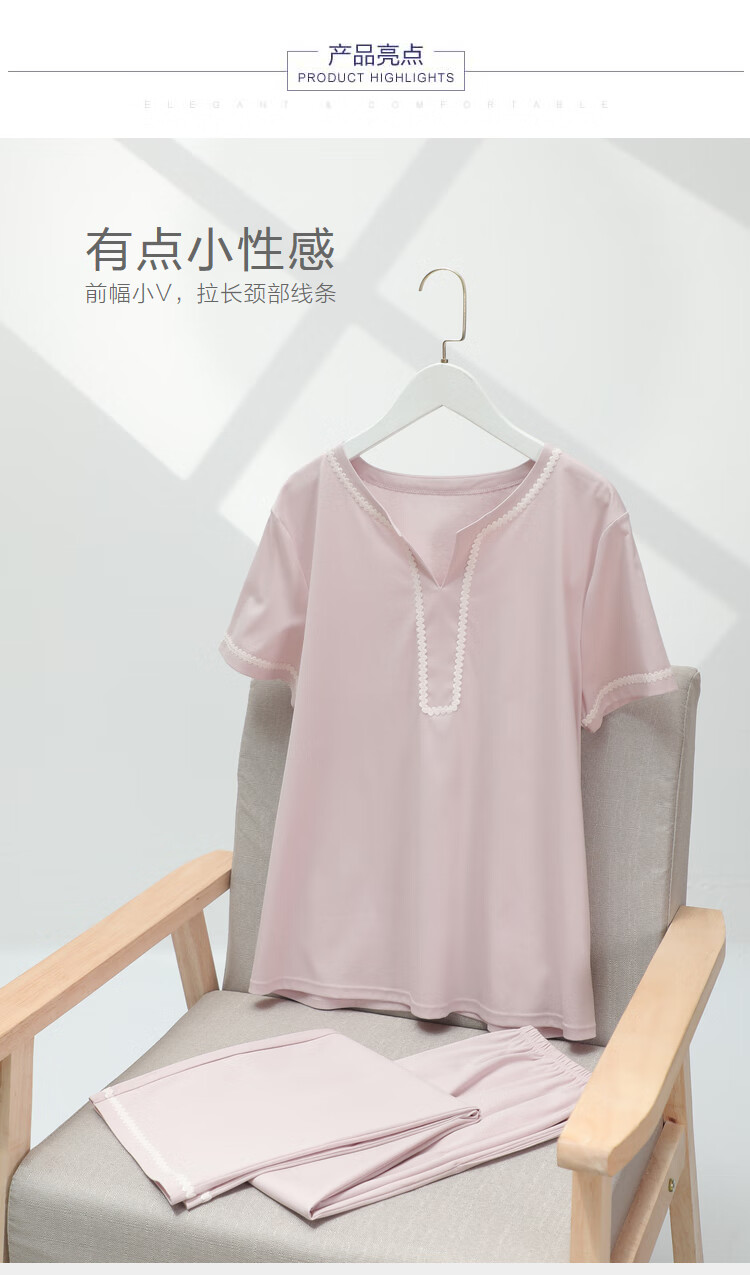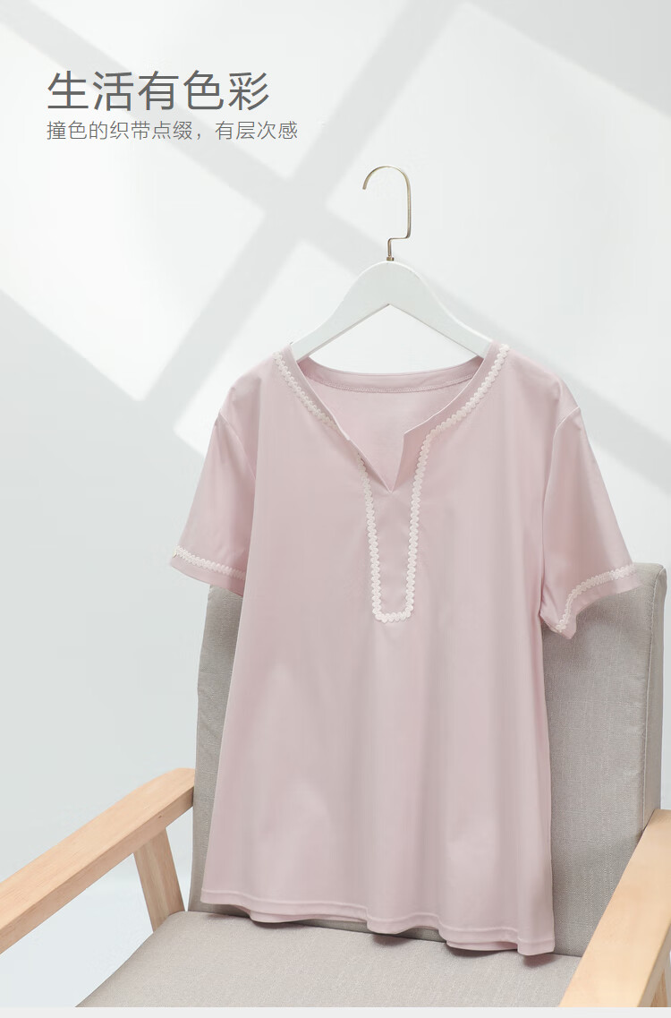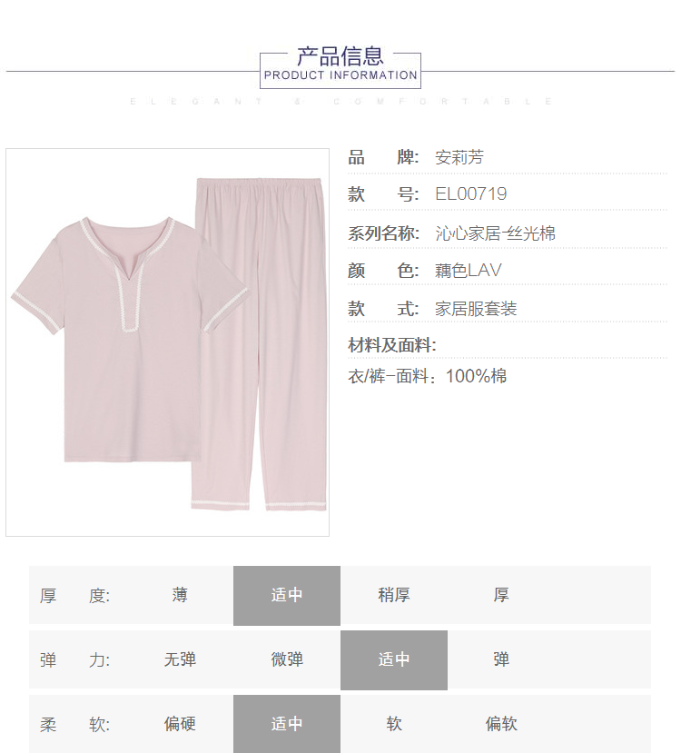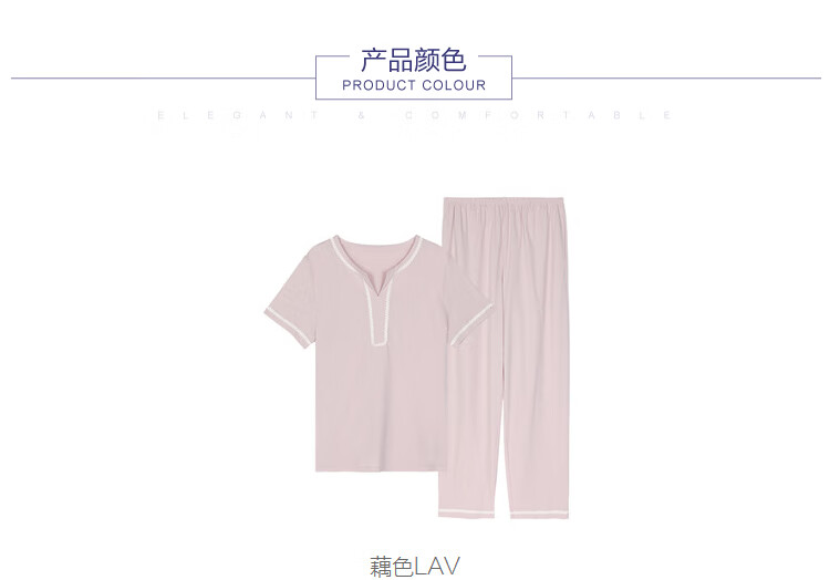 【3F】安莉芳丝光棉小v圆领短袖女士家居服套装EL00719 藕色LAV XL