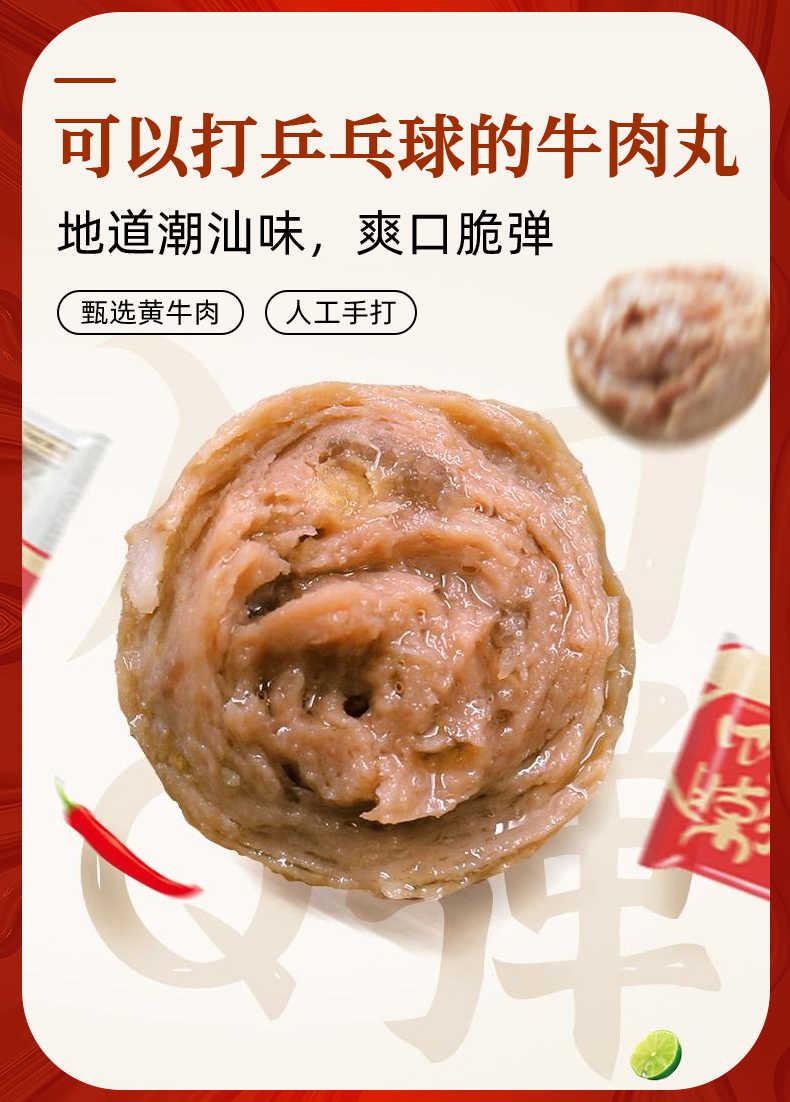 潮汕手打牛肉丸500g*1包+牛筋丸500g*1包