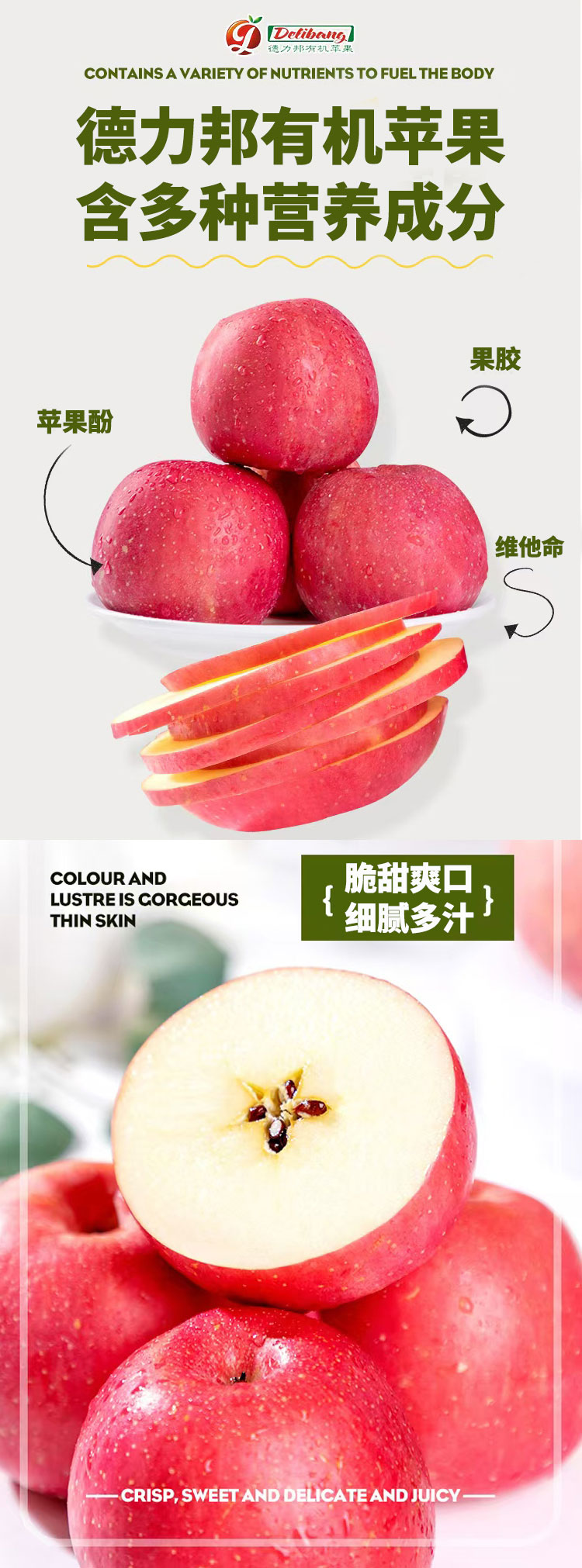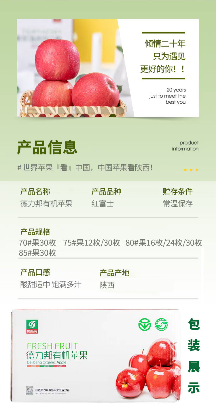 【厂商直发】陕西德力邦有机红富士苹果脆甜多汁新鲜包邮