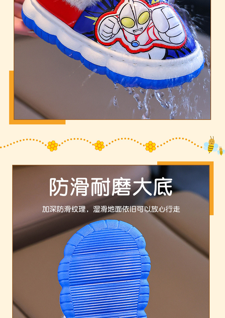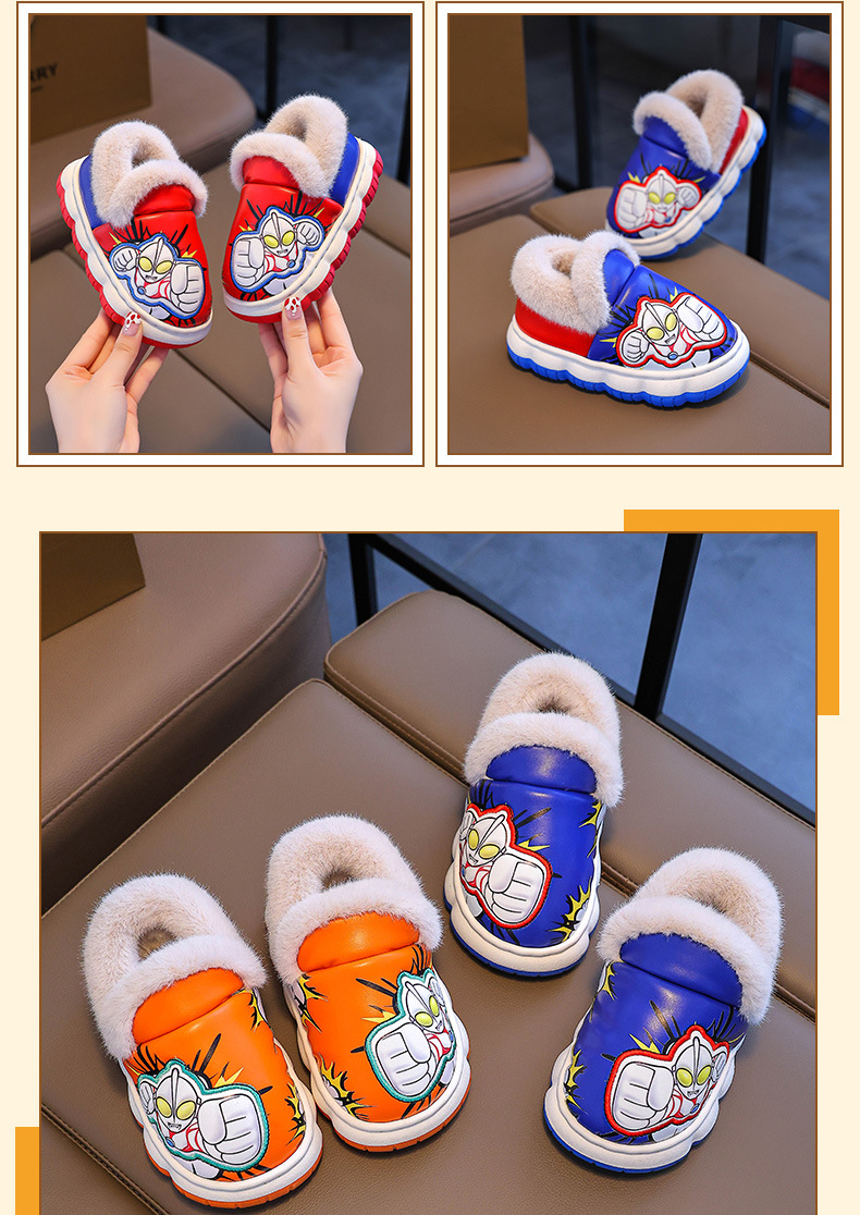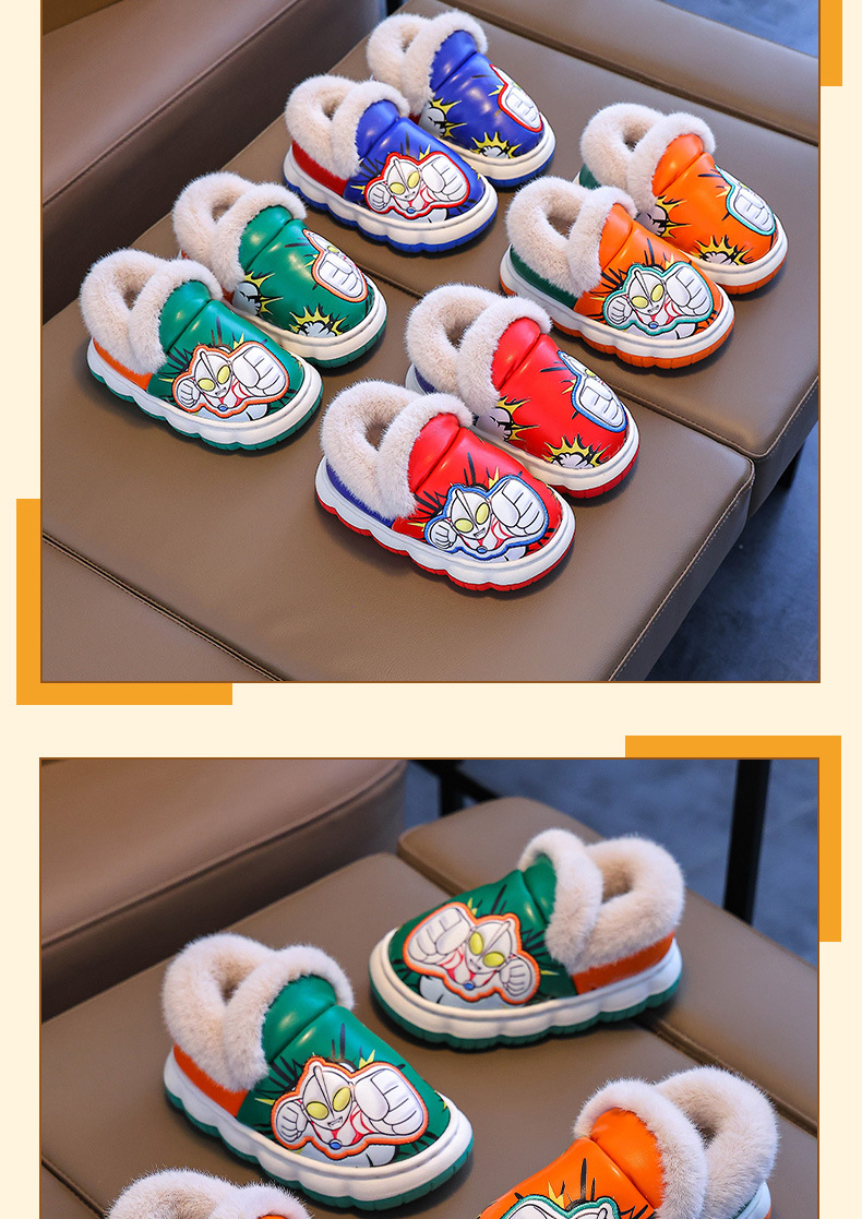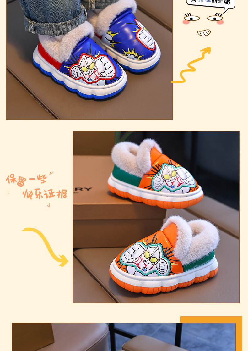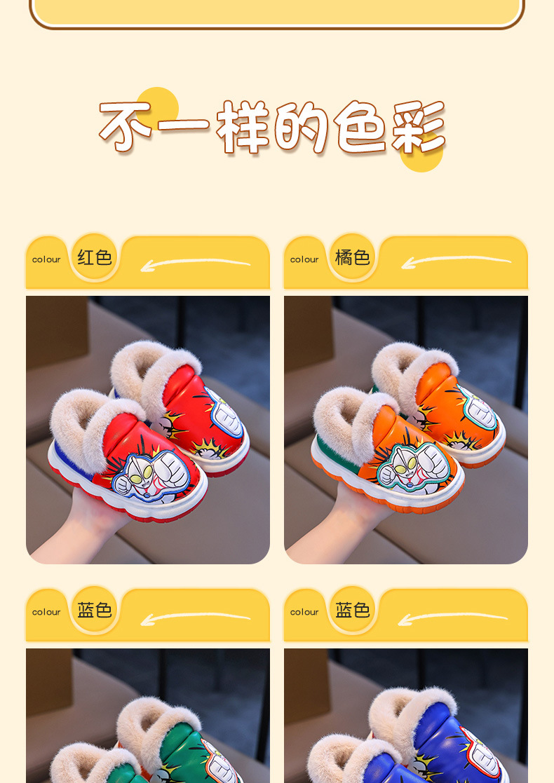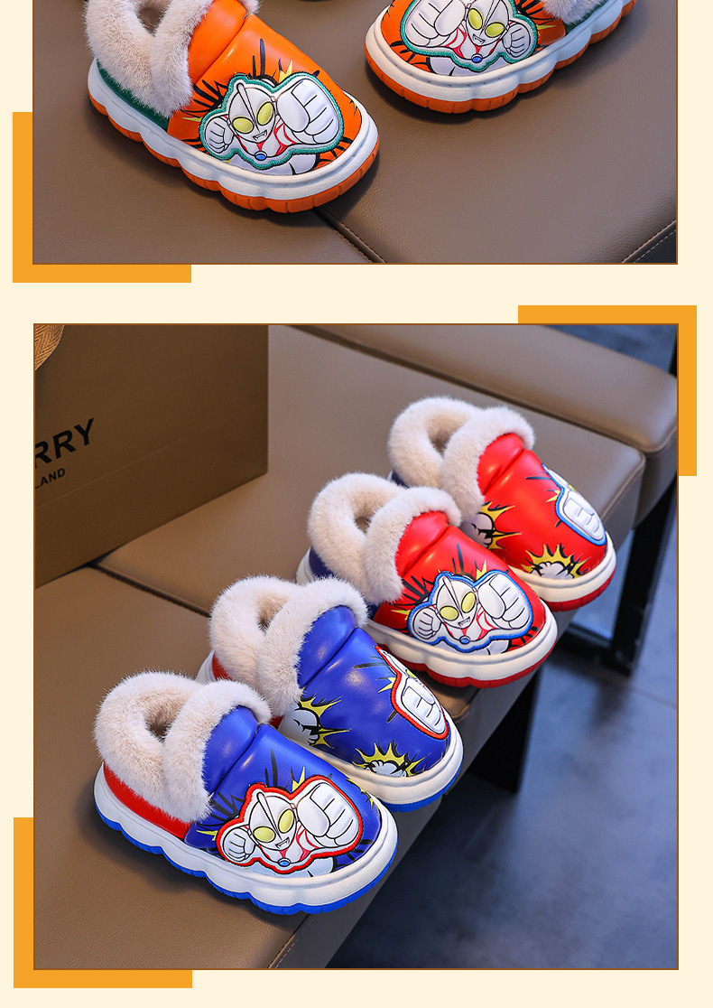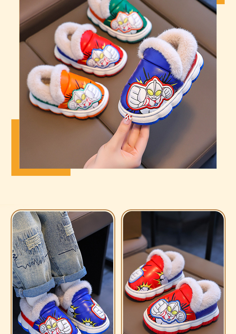 【奥特曼包跟保暖毛毛棉拖鞋】冬季男童PU防水厚底防滑儿童居家棉鞋