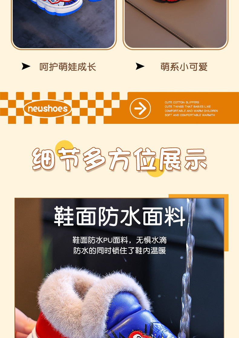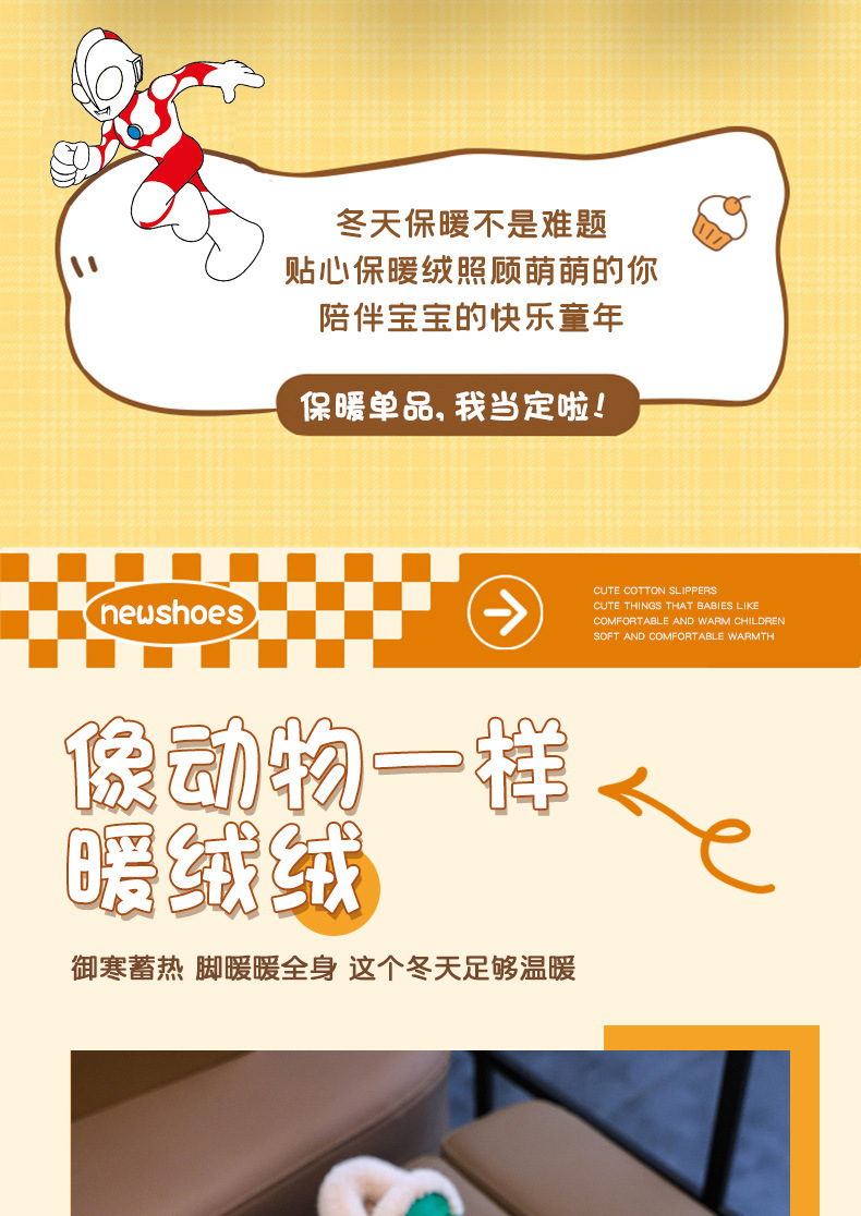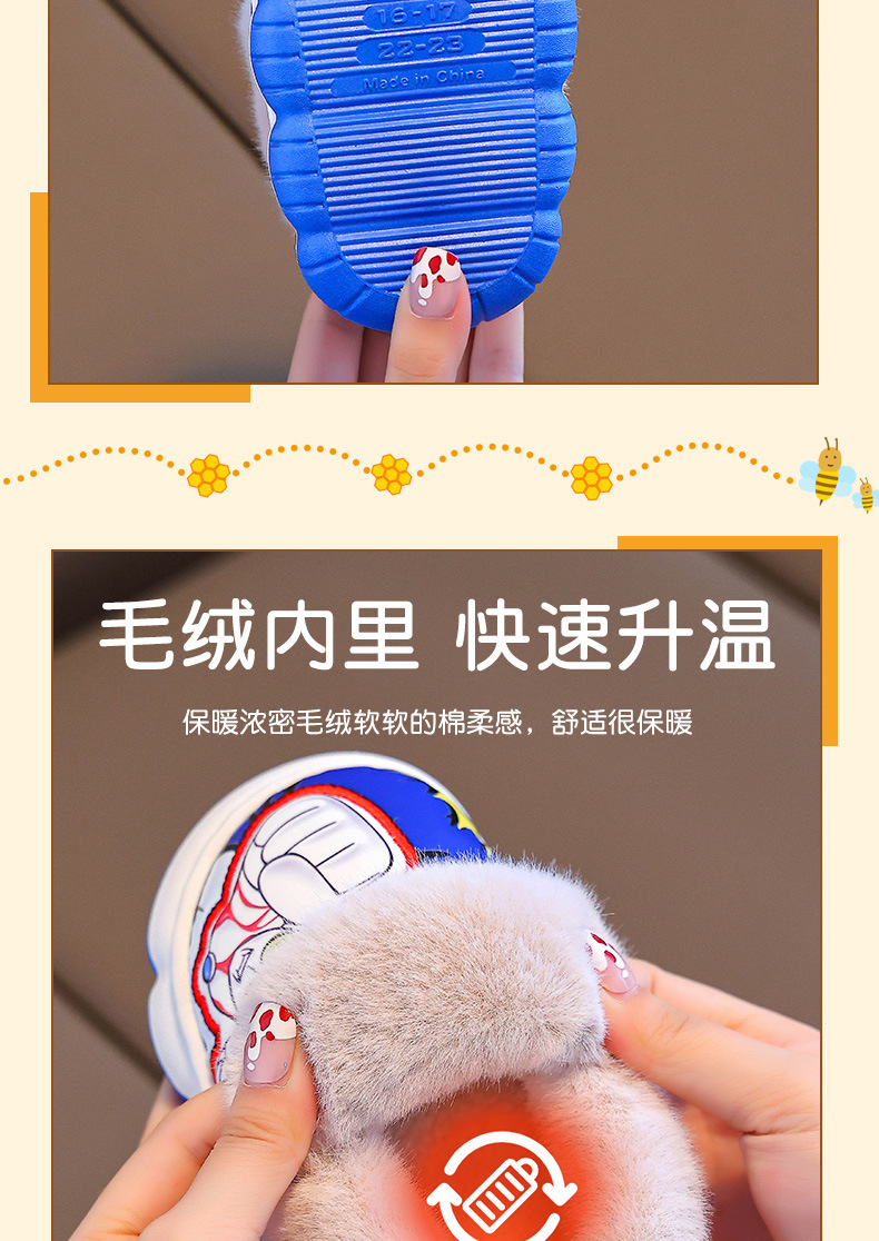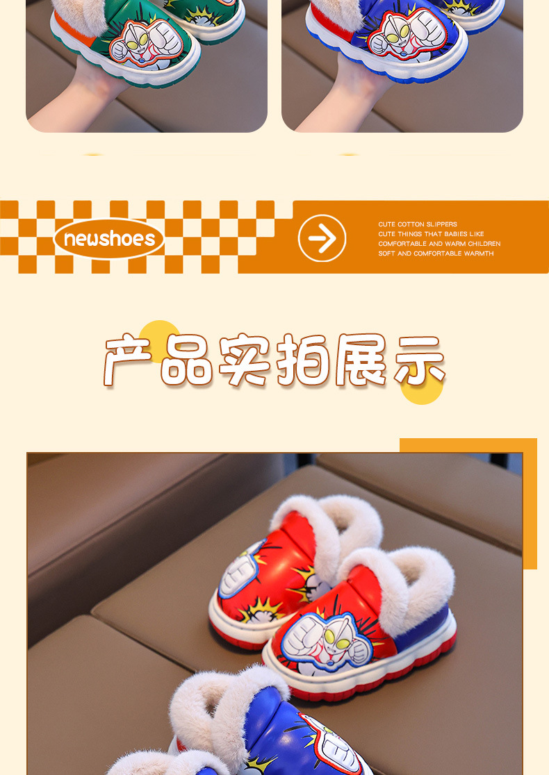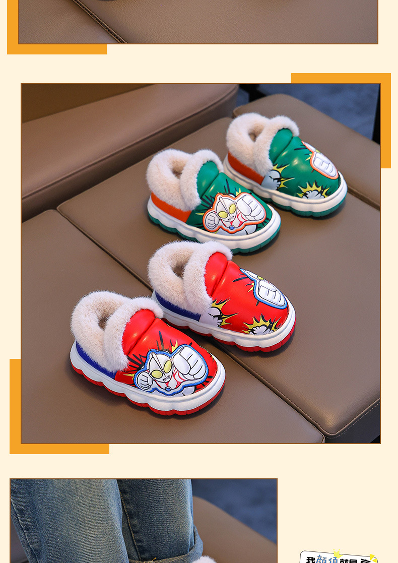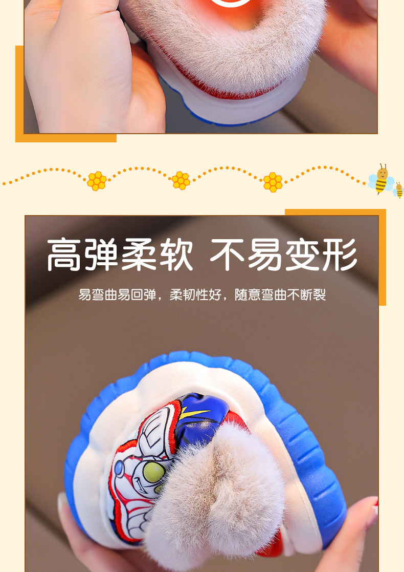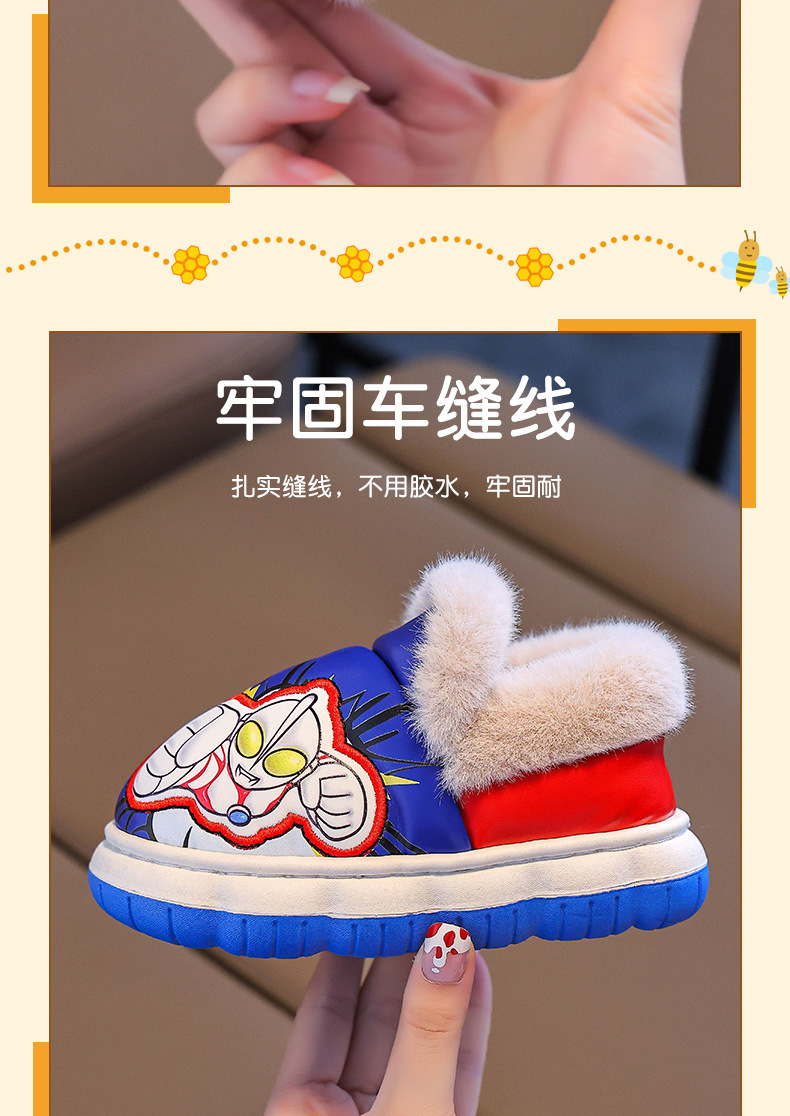 【奥特曼包跟保暖毛毛棉拖鞋】冬季男童PU防水厚底防滑儿童居家棉鞋