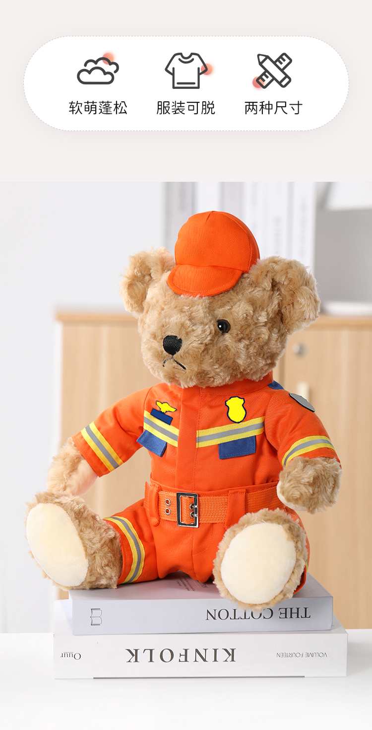 【坐姿消防熊辉辉】毛绒小熊公仔玩具服装可脱卸毛绒玩偶送礼礼品礼物