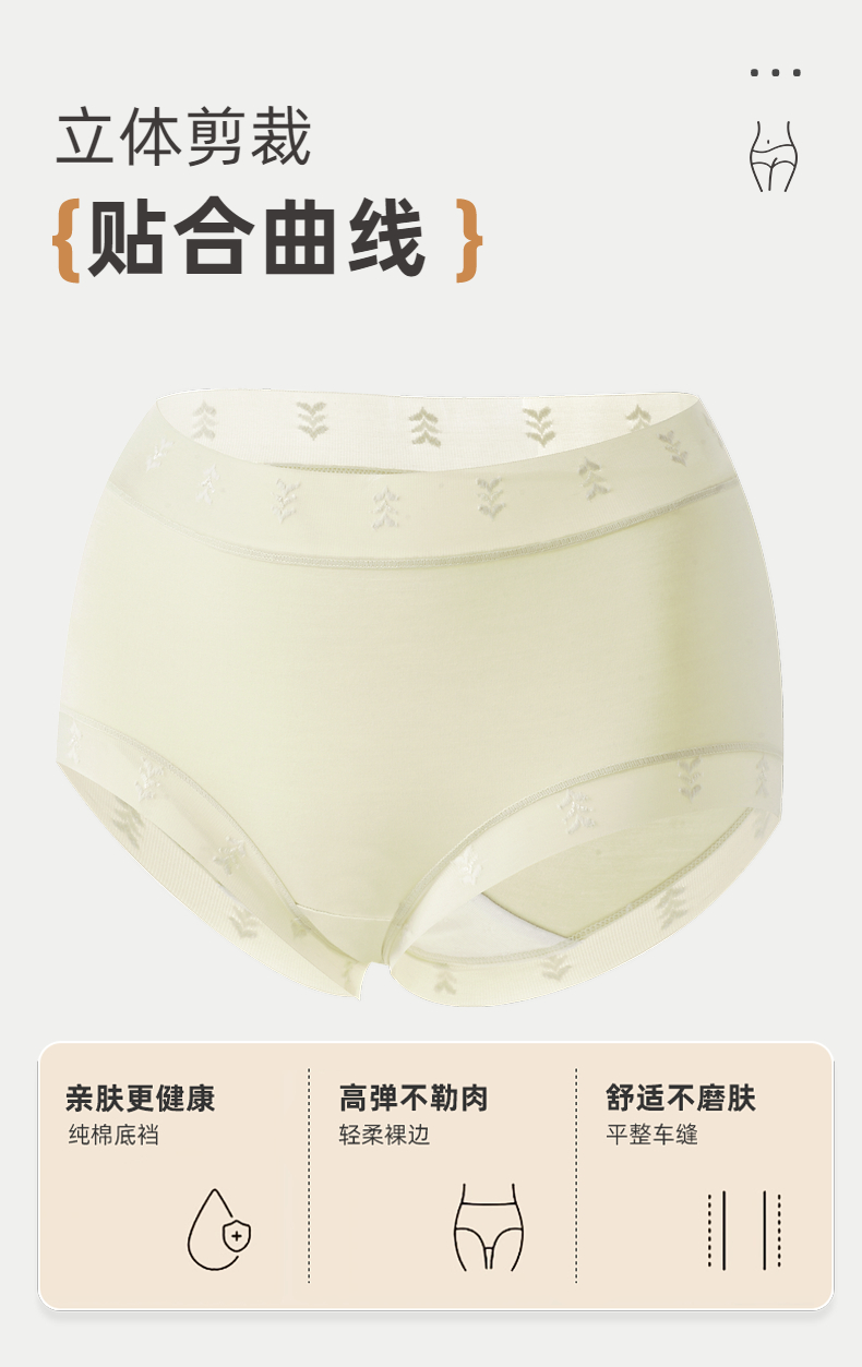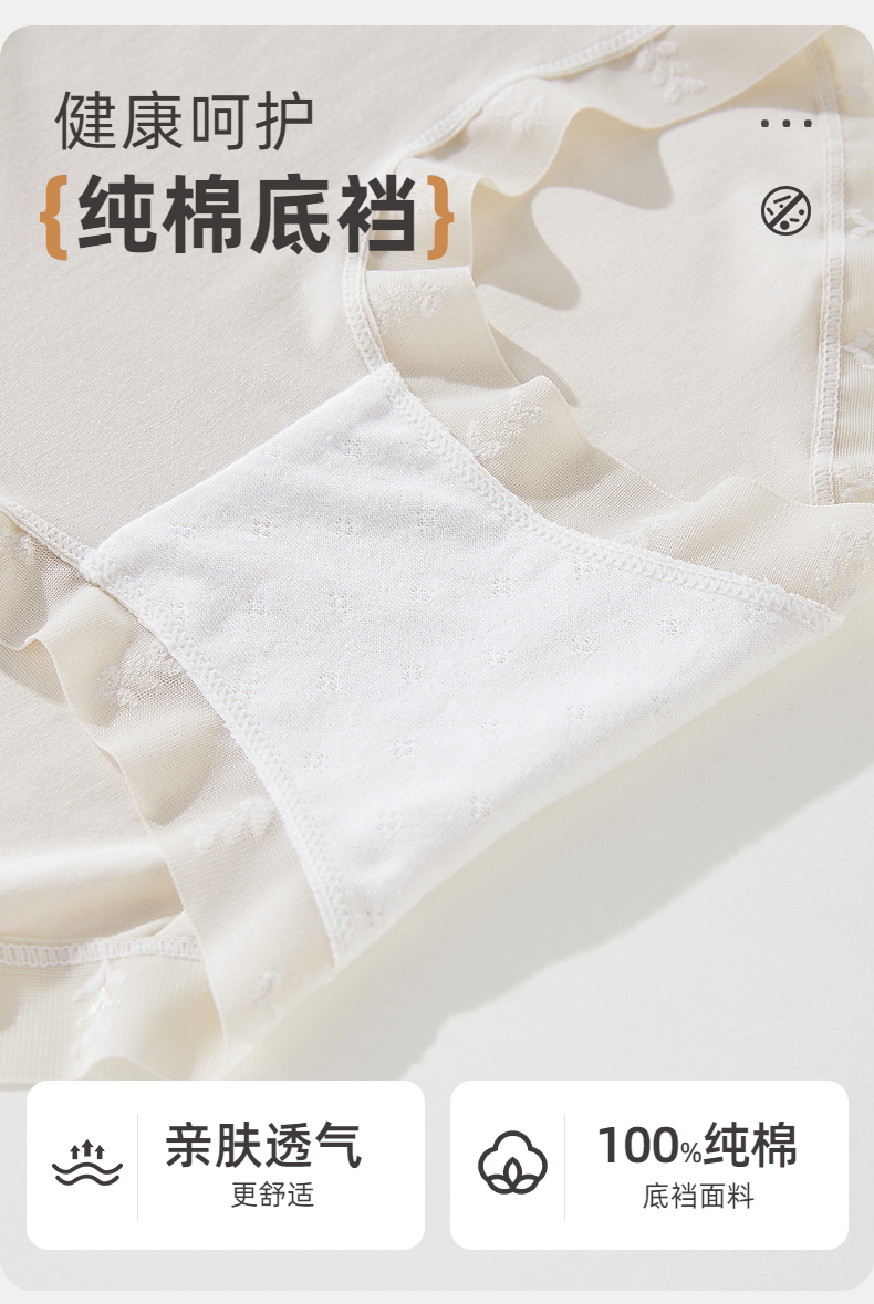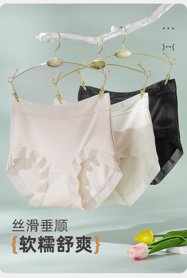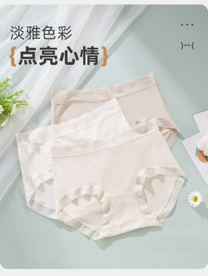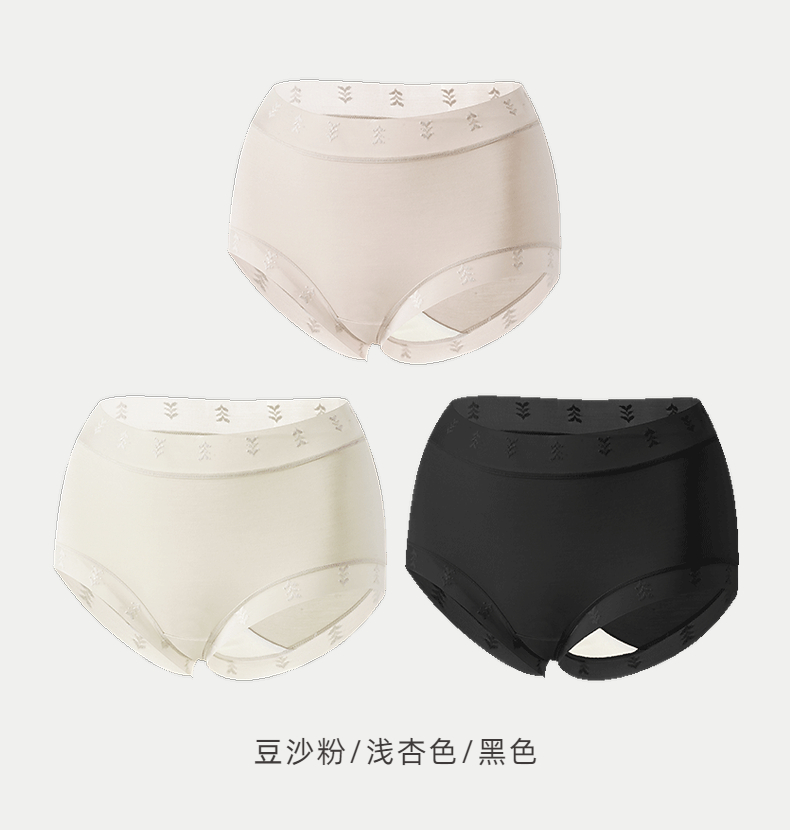【3条装】雅黛俪莫代尔女士内裤柔软舒适透气纯棉裆底三角裤不夹臀蕾丝提花裤头
